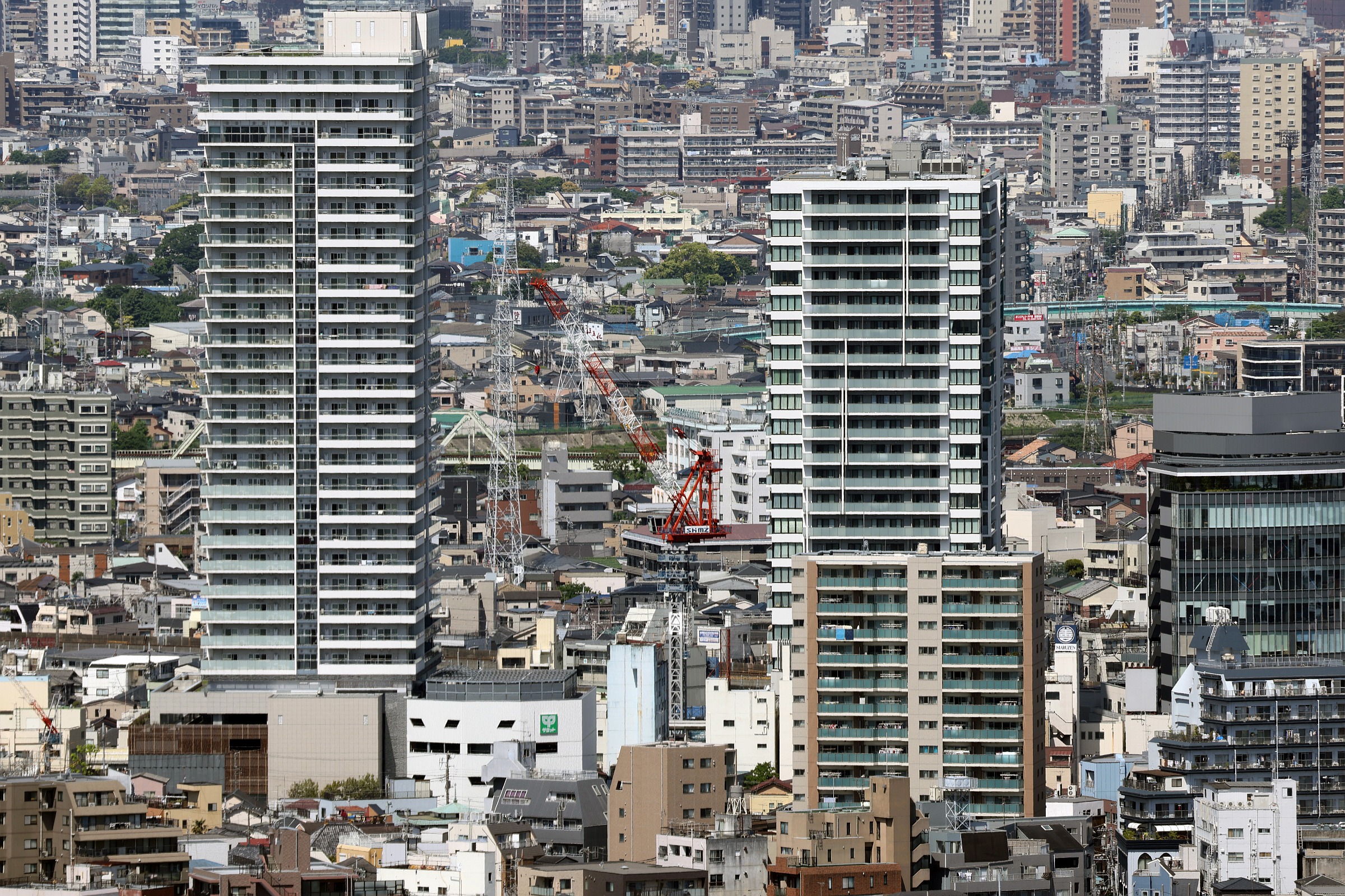 ¡¡ÉßÃÏÆî¦¤ÎÏ©ÃϤ«¤é»£±Æ¡£º¸¤¬¡Ö¥×¥é¥¦¥É¥¿¥ï¡¼¾®´ä¥Õ¥¡¡¼¥¹¥È¡×(ÃϾå22³¬¡¢ºÇ¹â¹â¤µ85.79m)¤Ç¡¢±¦Â¦¤¬¡Ö¥¢¥ë¥Õ¥¡¥°¥é¥ó¥Ç¾®´ä¥¹¥«¥¤¥Õ¥¡¡¼¥¹¥È¡×(ÃϾå29³¬¡¢ºÇ¹â¹â¤µ105.2m)¤Ç¤¹¡£