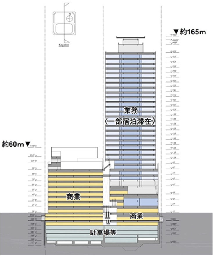 ¡¡¤½¤Î±Ø¥Ó¥ë¤Ç¤â¤¢¤ë¡ÖJR¥¿¥ï¡¼¡×(ÃϾå38³¬¡¢¹â¤µ173m)¤Î±¦Â¦¤Ç¤Ï¡Ö(²¾¾Î)»¥ËڱظòήµòÅÀËÌ5À¾1¡¦À¾2Ã϶èÂè°ì¼ï»Ô³¹ÃϺƳ«È¯»ö¶È¡×(ÃϾå42³¬¡¢¹â¤µÌó236.20m)¤¬·úÀßͽÄê¤È¤Ê¤Ã¤Æ¤¤¤Þ¤¹¡£