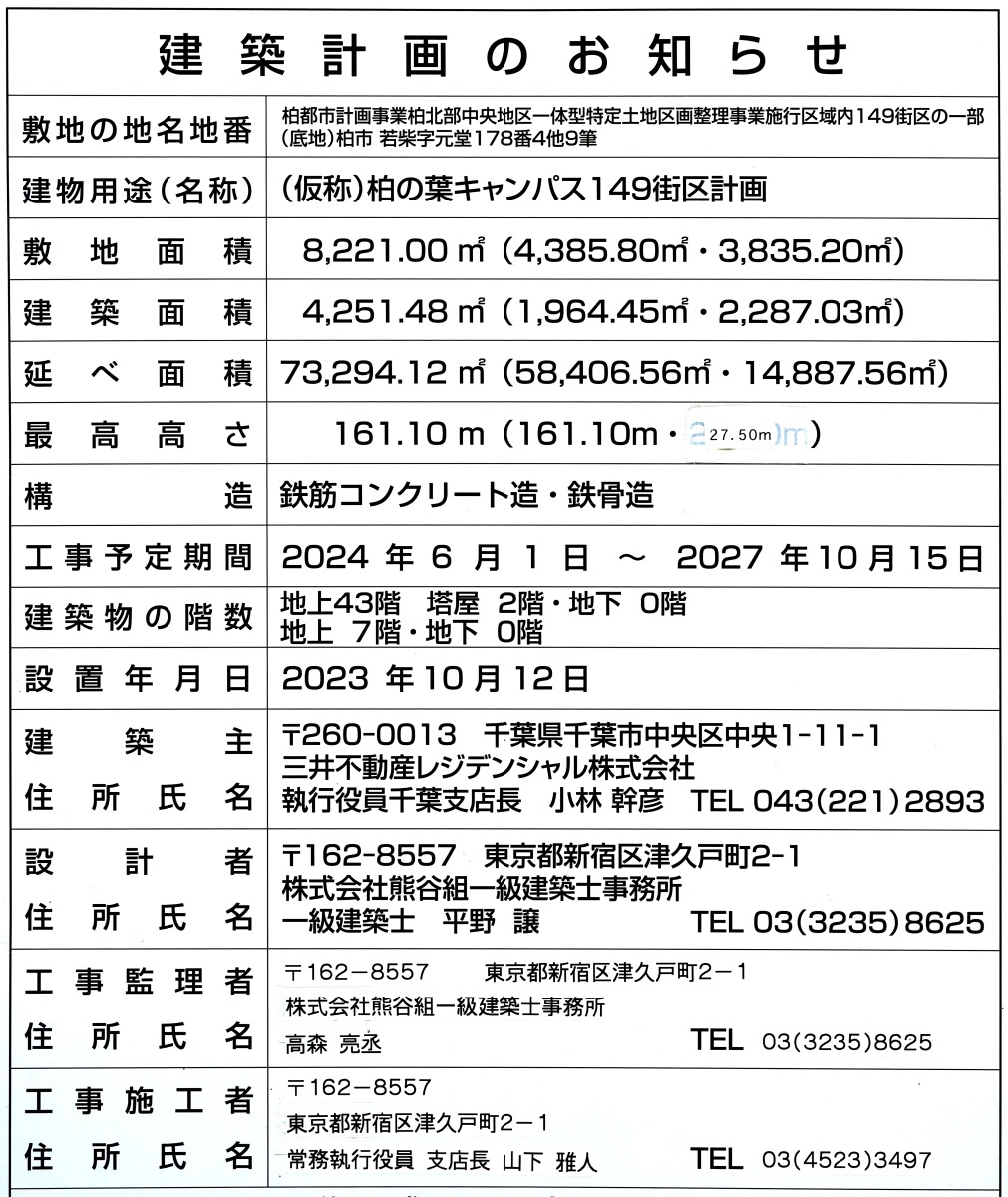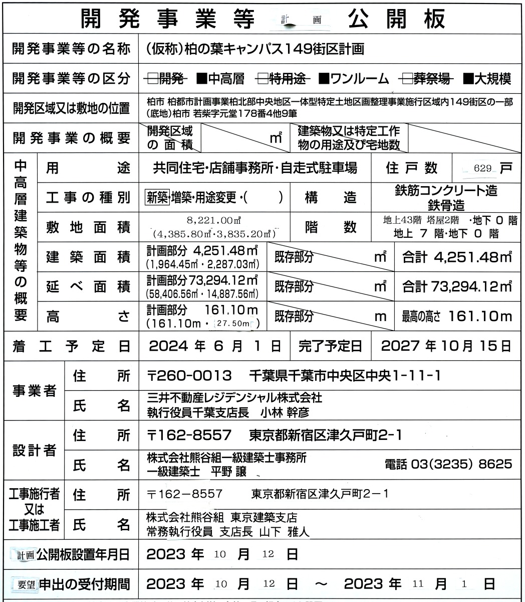¡¡¡Ö(²¾¾Î)Çð¤ÎÍÕ¥¥ã¥ó¥Ñ¥¹149³¹¶è·×²è¡×¤Ï¤Ä¤¯¤Ð¥¨¥¯¥¹¥×¥ì¥¹¡ÖÇð¤ÎÍÕ¥¥ã¥ó¥Ñ¥¹¡×±ØÁ°ËÌÅ즤κƳ«È¯¤Ç¡¢µ¬ÌϤÏÃϾå43³¬¡¢Åã²°2³¬¡¢¹â¤µ161.10m¡¢ÉßÃÏÌÌÀÑ8,221.00Ö¡¢·úÃÛÌÌÀÑ4,251.48Ö¡¢±ä¾²ÌÌÀÑ7Ëü3294.12Ö¡¢Áí¸Í¿ô629¸Í¤È¤Ê¤Ã¤Æ¤¤¤Þ¤¹¡£·úÃÛ¼ç¤Ï»°°æÉÔÆ°»º¥ì¥¸¥Ç¥ó¥·¥ã¥ë¡¢À߷׼ԤȻܹ©¼Ô¤Ï·§Ã«ÁȤÇ2024ǯ6·î1ÆüÃ幩¡¢2027ǯ10·î15Æü¤Î½×¹©Í½Äê¤Ç¤¹¡£