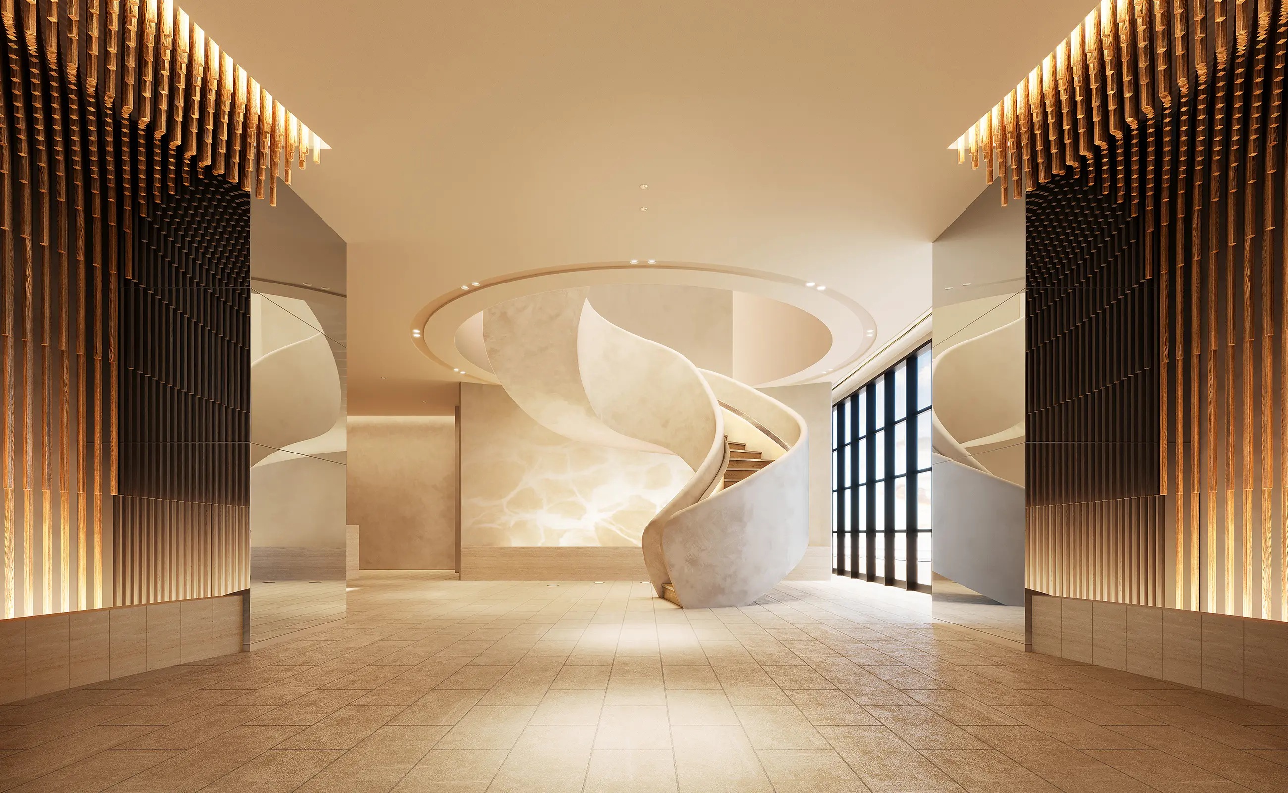 ¡¡¤é¤»¤ó¾õ¤Î³¬Ãʤ¬Àߤ±¤é¤ì¤ë1³¬¤Î¥¨¥ó¥È¥é¥ó¥¹¥Û¡¼¥ë¤Î´°À®Í½ÁۿޤǤ¹¡£¥á¥¤¥ó¥¨¥ó¥È¥é¥ó¥¹¤Ï1³¬¤Ë¤Ê¤ê¤Þ¤¹¤¬¡¢±Ø¤Èľ·ë¤¹¤ë2³¬¤ËÂðÇۥܥ寥¹¤ä¥á¡¼¥ë¥³¡¼¥Ê¡¼¤¬ÇÛÃÖ¤µ¤ì¤Þ¤¹¡£