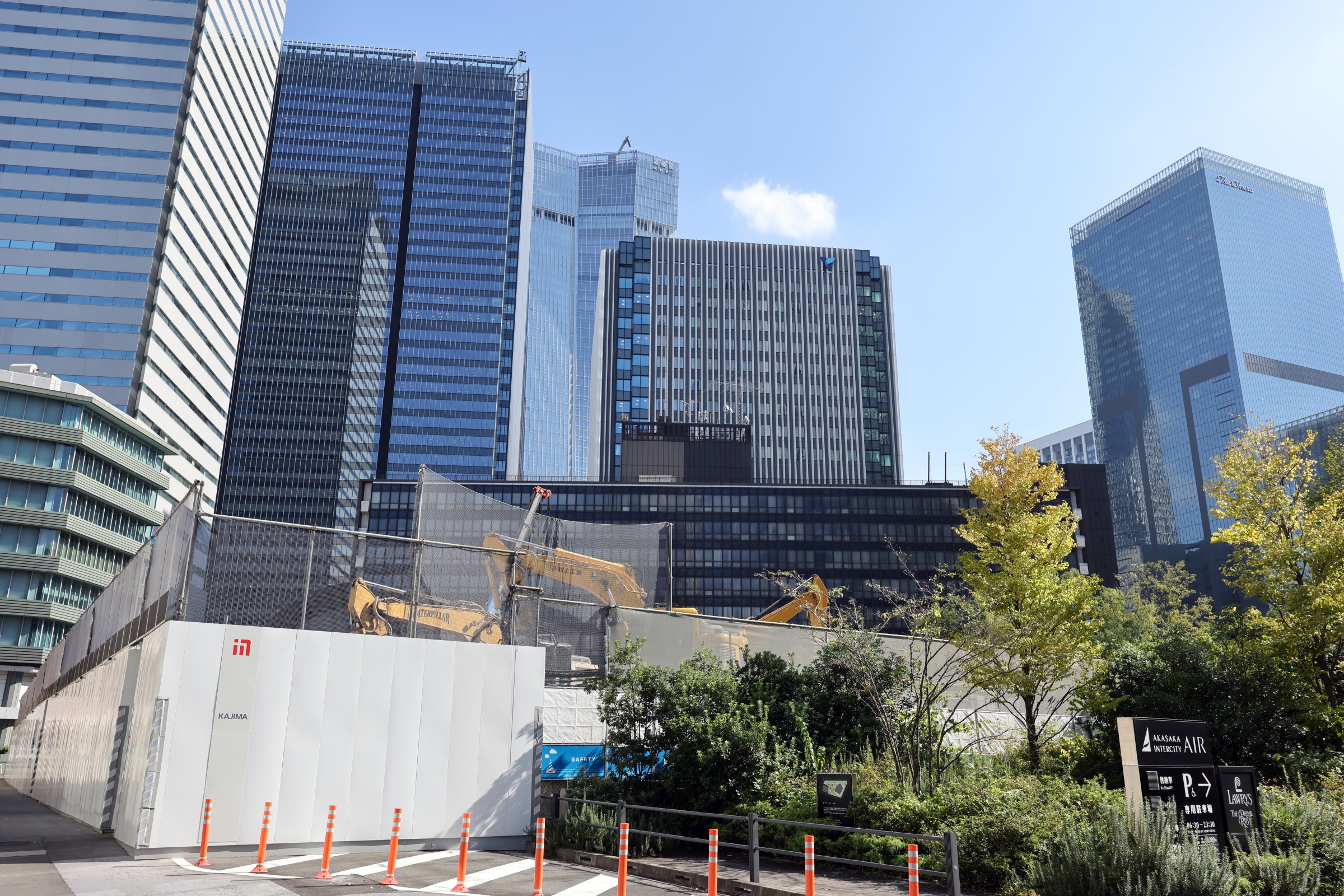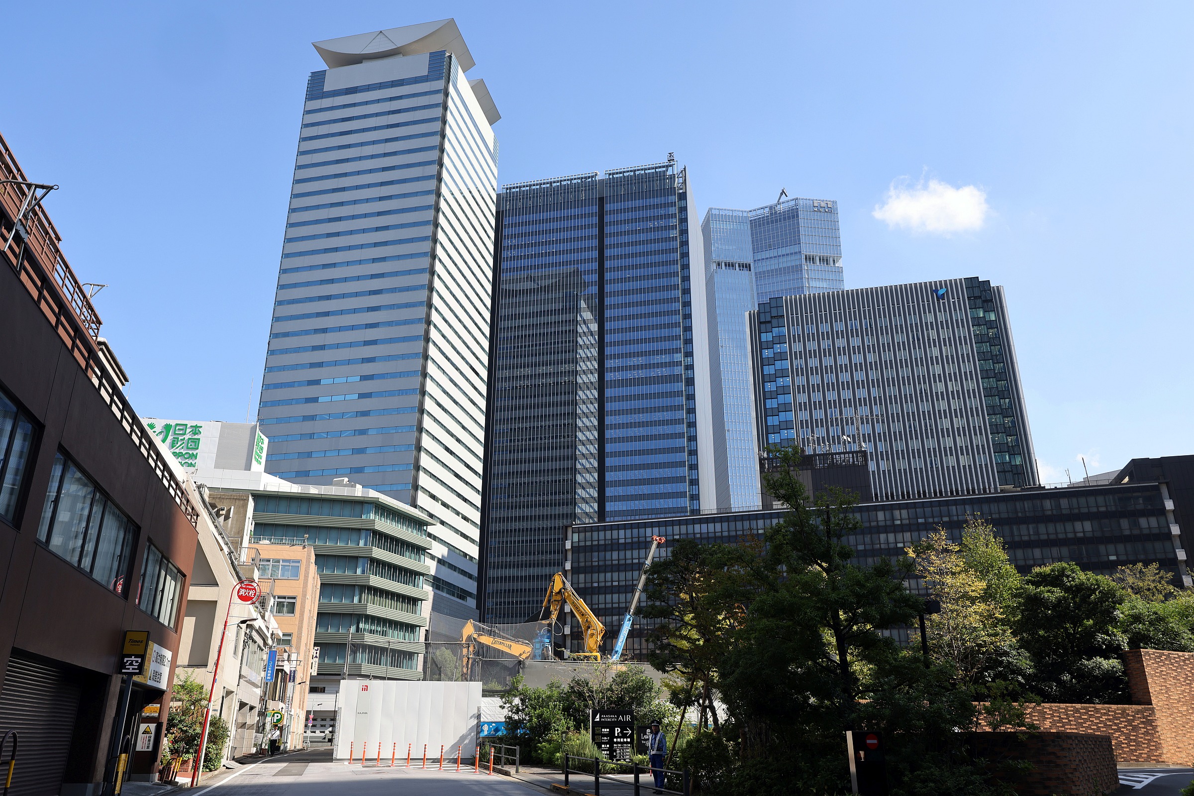 ¡¡¤³¤ì¤é¤Î¼êÁ°¤Ç¤Ï¡Ö»°²ñƲ¥Ó¥ë¿·ÃÛ¹©»ö¡×(ÃϾå19³¬¡¢¹â¤µ94m)¤¬·úÀßÃæ¤Î¤¿¤á¡¢¤³¤³¤«¤é¤³¤¦¤·¤Æ¸«¤¨¤ë¤Î¤Ïº£¤À¤±¤Ç¤¹¡£