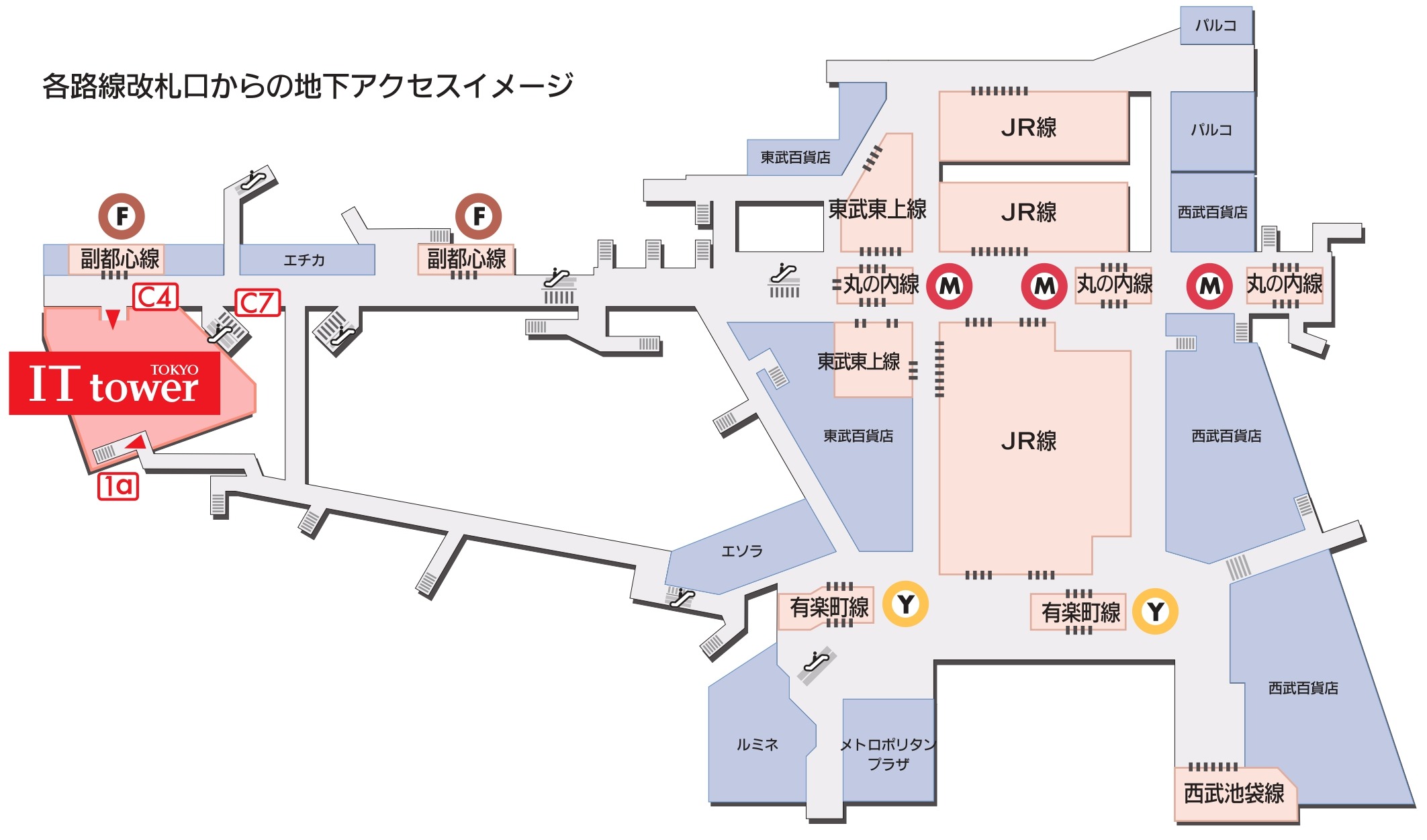 ¡¡Æ±¥Ó¥ë¤Ï±Ø¥Á¥«¾¦¶È»ÜÀߡ֥¨¥Á¥«ÃÓÂޡפäÃϲ¼ÄÌÏ©¤Ëľ·ë¤·¡¢¤½¤³¤«¤éJR¡¦ÅìÉðÅ´Æ»¡¦À¾ÉðÅ´Æ»¡¦Åìµþ¥á¥È¥í¤Î4¼Ò8Ï©Àþ¤Î³Æ¡ÖÃÓÂޡױؤËÀܳ¤·¤Þ¤¹¡£¤½¤ÎÃæ¤Ç¤â°ìÈֶᤤ±Ø¤ÏÅìµþ¥á¥È¥í¤ÎÉûÅÔ¿´Àþ¤Î¡ÖÃÓÂޡױؤÇÌܤÎÁ°¤Ë°ÌÃÖ¤·¤Æ¤¤¤Þ¤¹¡£