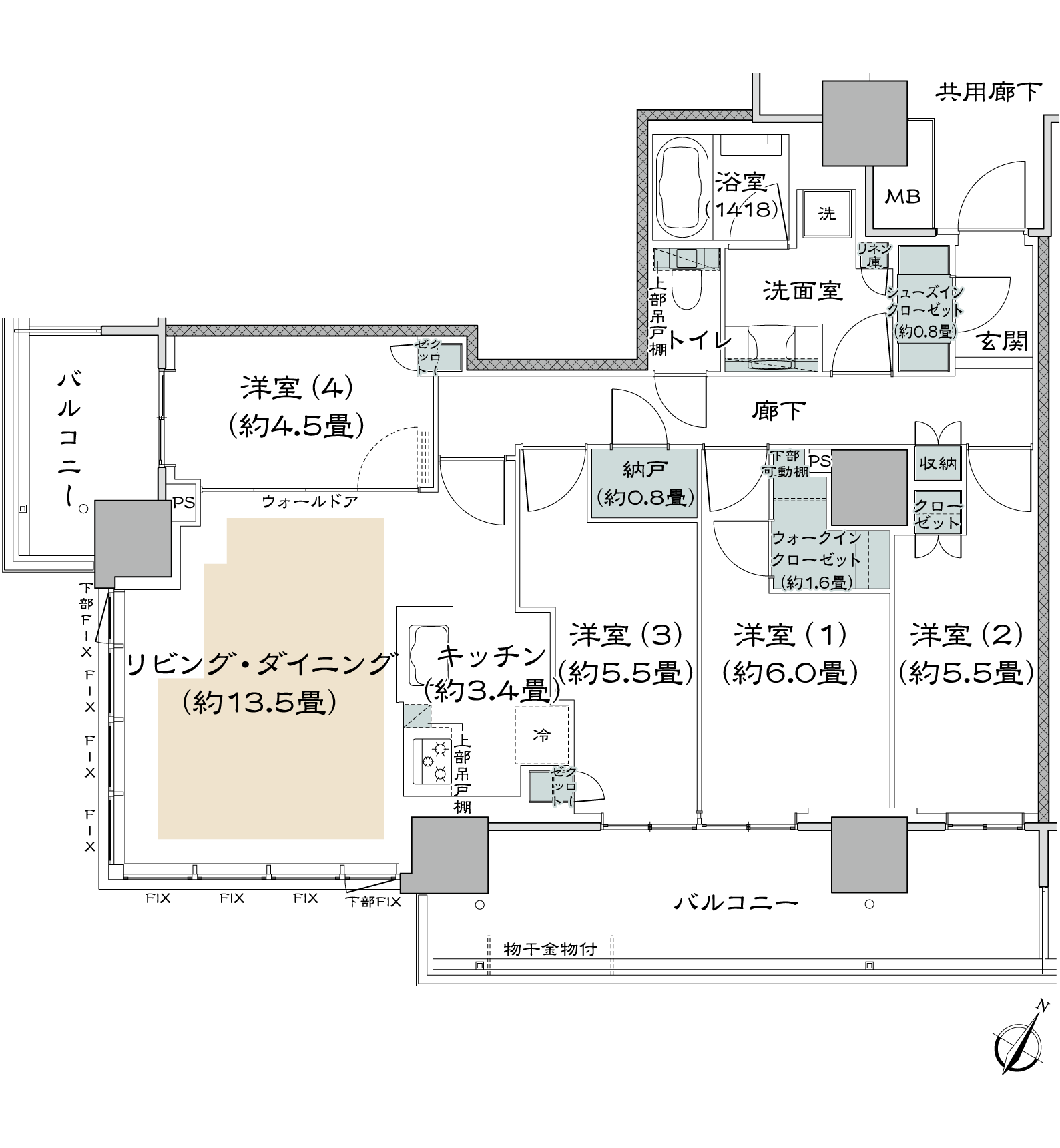 ¡¡90A¥¿¥¤¥×¤Î´Ö¼è¤ê¿Þ¤Ç¤¹¡£´Ö¼è¤ê¤Ï4LDK+WIC+SIC+N¡¢ÀìÍÌÌÀѤÏ92.21Ö¡¢¥Ð¥ë¥³¥Ë¡¼ÌÌÀѤÏ22.08֤ȤʤäƤ¤¤Þ¤¹¡£