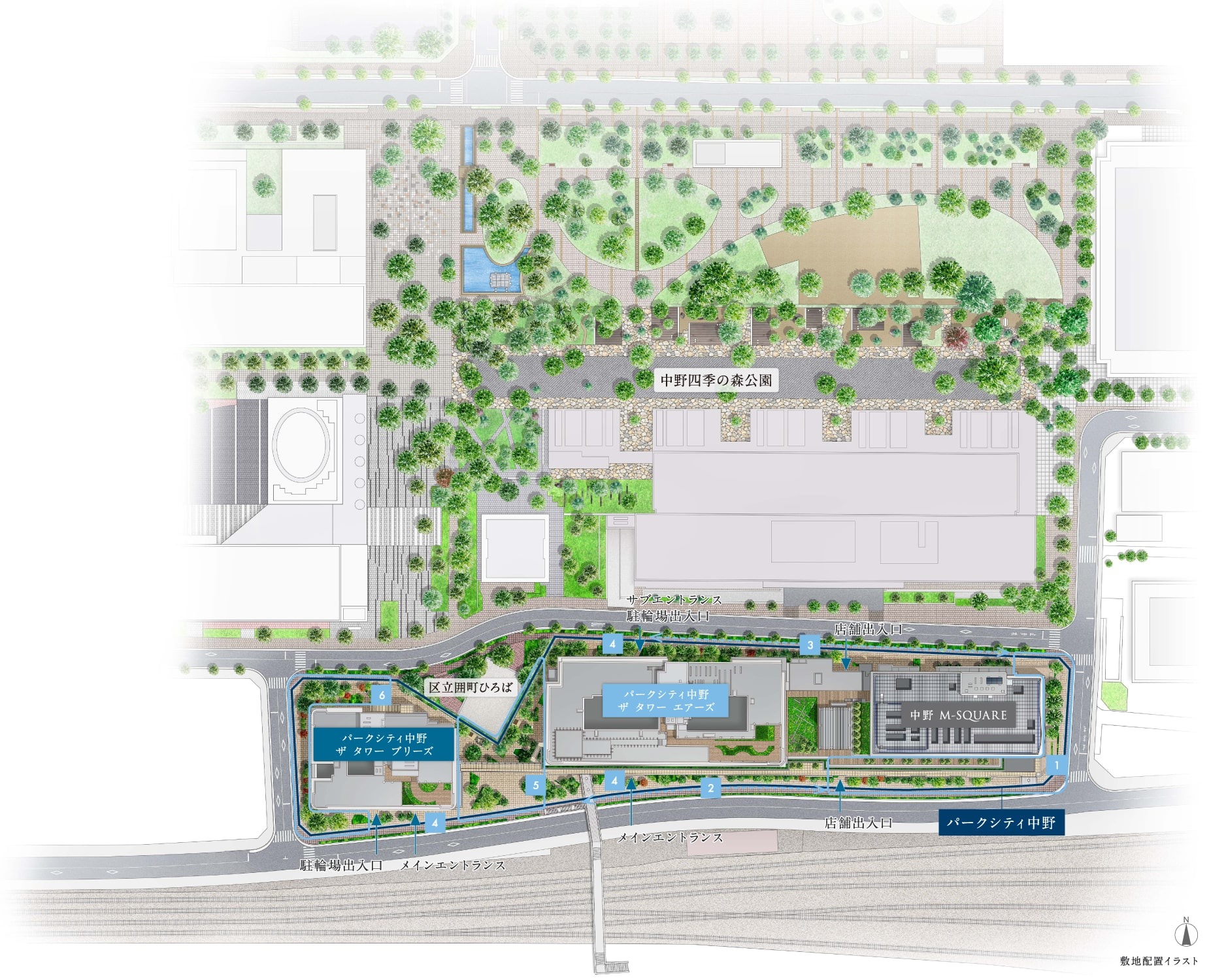 ¡¡ÉßÃϤÏÅìÀ¾¤ËĹºÙ¤¯¡¢ÃæÌî¶èΩ°ÏÄ®¤Ò¤í¤Ð¤ò¶¤ËAÉßÃϤÈBÉßÃϤËʬ¤«¤ì¤Æ¤ª¤ê¡¢±Ø¤Ë¶á¤¤AÉßÃϡʰÏÄ®¤Ò¤í¤Ð¤Î±¦Â¦¡Ë¤Ë¤Ï¥¶ ¥¿¥ï¡¼ ¥¨¥¢¡¼¥º¤ÈÃæÌîM-SQUARE¤¬ÇÛÃÖ¤µ¤ì¡¢BÉßÃϡʰÏÄ®¤Ò¤í¤Ð¤Îº¸Â¦¡Ë¤Ë¤Ï¥¶ ¥¿¥ï¡¼ ¥Ö¥ê¡¼¥º¤¬ÇÛÃÖ¤µ¤ì¤Þ¤¹¡£