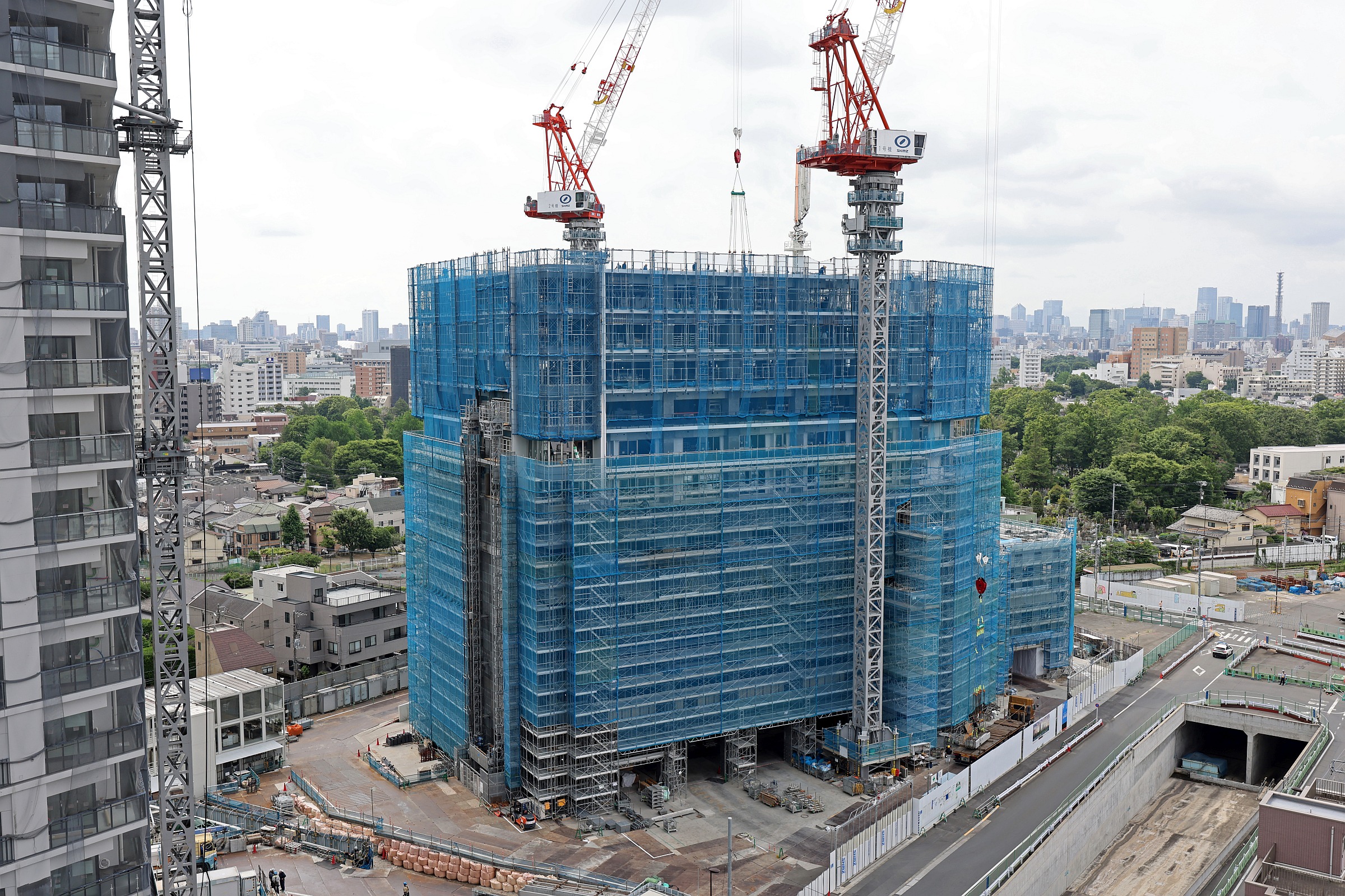 ¡¡ÃÓÂޤǷúÀßÃæ¤Î¥¿¥ï¥Þ¥ó¡Ö¥×¥é¥¦¥É¥¿¥ï¡¼ÃÓÂÞ¡×(ÃϾå47³¬¡¢¹â¤µ182m)¤Ç¤¹¡£2025ǯ6·î14Æü¤Ë»£±Æ¤·¤Þ¤·¤¿¡£º¸¸å¤í¤Ç·úÀßÃæ¤Î¡Ö¥°¥é¥ó¥É¥·¥Æ¥£¥¿¥ï¡¼ÃÓÂÞ¡×(ÃϾå52³¬¡¢¹â¤µ189.88m)¤È¥Ç¥Ã¥¤ÇÀܳ¤·¡¢¤½¤Î¥¿¥ï¥Þ¥ó·Ðͳ¤ÇÅìÃÓÂޱؤËÀܳ¤·¤Þ¤¹¡£¤³¤Îµ»ö¤Ç¤ÏƱ¥¿¥ï¥Þ¥ó¤Î³µÍפä·úÀß¾õ¶·¡¢ÃÏ¿ÞÅù¤òºÜ¤»¤Æ¤¤¤Þ¤¹¡£