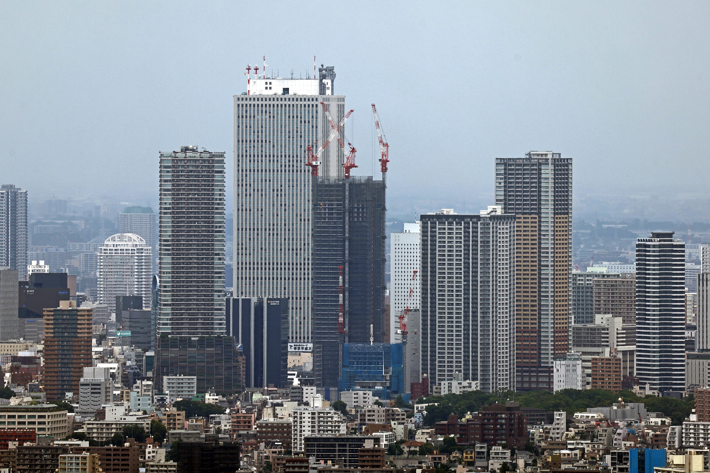 ¡¡2025ǯ6·î14Æü¤Ë»£±Æ¤·¤¿¡Ö¥×¥é¥¦¥É¥¿¥ï¡¼ÃÓÂÞ¡×(ÃϾå47³¬¡¢¹â¤µ182m)¤Î·úÀßÃϤǤ¹¡£º¸¸å¤í¤Ç·úÀßÃæ¤Î¥¿¥ï¡¼¥Þ¥ó¥·¥ç¥ó¤¬¡Ö¥°¥é¥ó¥É¥·¥Æ¥£¥¿¥ï¡¼ÃÓÂÞ¡×(ÃϾå52³¬¡¢¹â¤µ189.88m)¤Ç¤¹¡£