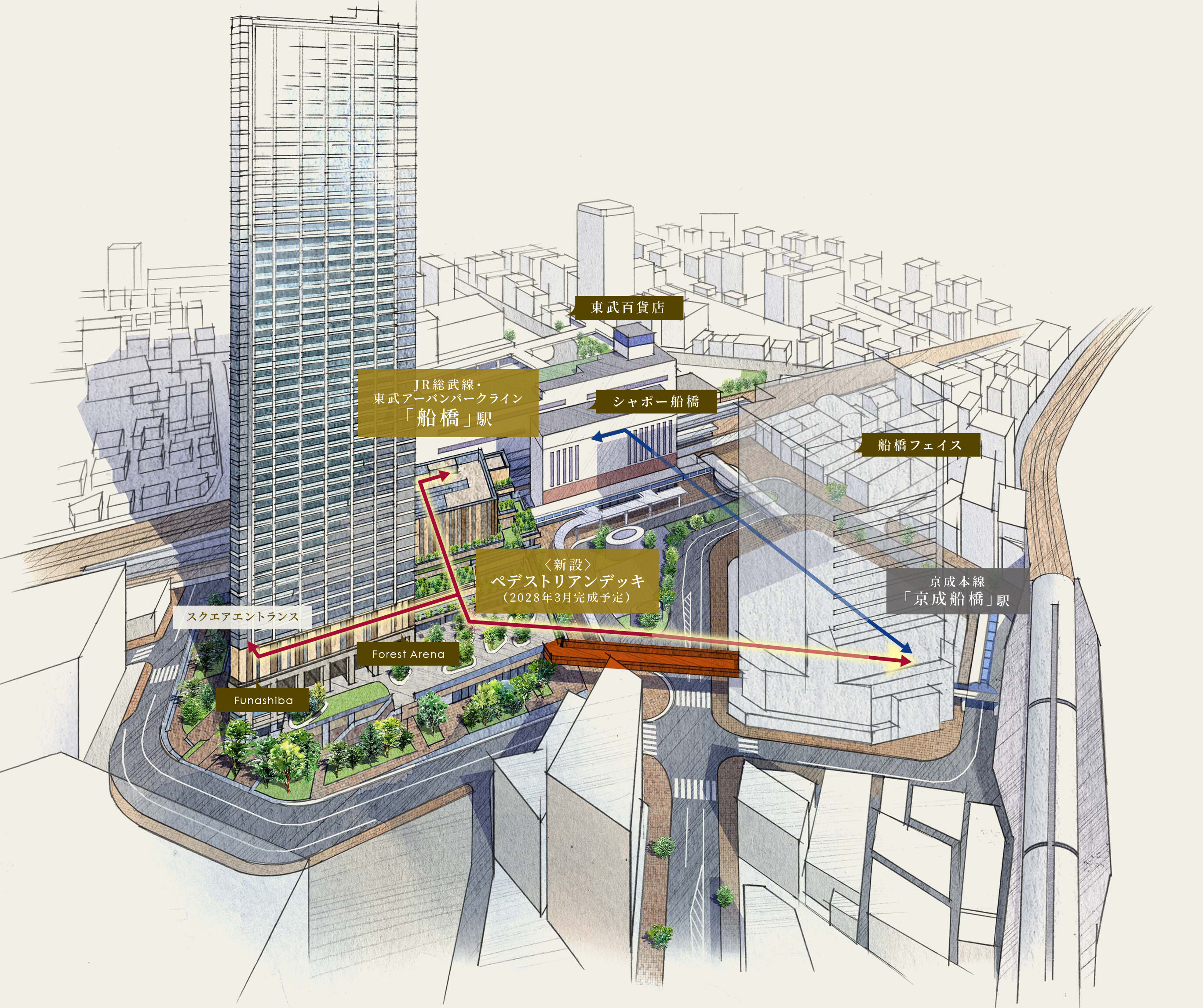 ¡¡¥Ú¥Ç¥¹¥È¥ê¥¢¥ó¥Ç¥Ã¥¤Ï¡Ö¥·¥ã¥Ý¡¼Á¥¶¶¡×¤Î¥Ç¥Ã¥¤È¡ÖÁ¥¶¶¥Õ¥§¥¤¥¹¡×¤ËÀܳ¤¹¤ë¤³¤È¤Ç¡¢JR¡¦ÅìÉð¤Î¡ÖÁ¥¶¶¡×±Ø¤ÈµþÀ®ËÜÀþ¡ÖµþÀ®Á¥¶¶¡×±Ø¤ËÀܳ¤·¤Þ¤¹¡£