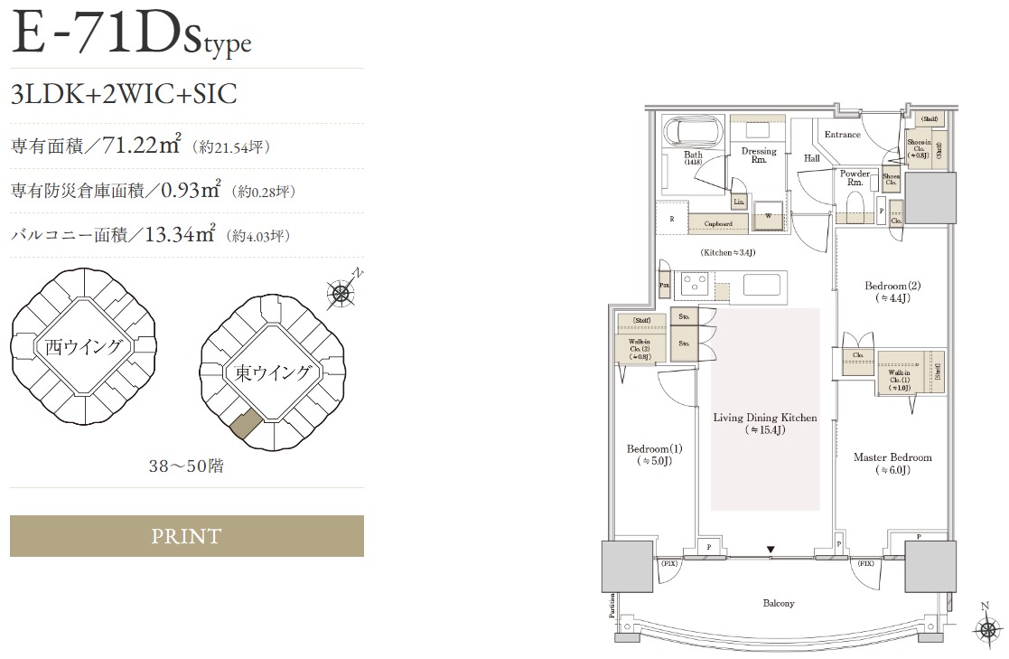 ¡¡Å쥦¥¤¥ó¥°¤Î38³¬¡Á50³¬¤ËÇÛÃÖ¤µ¤ì¤ëE-71Ds¥¿¥¤¥×¤Î´Ö¼è¤ê¿Þ¤Ç¤¹¡£´Ö¼è¤ê¤Ï3LDK+2WIC+SIC¡¢ÀìÍÌÌÀѤÏ71.22Ö¡¢ÀìÍËɺÒÁÒ¸ËÌÌÀѤÏ0.93Ö¡¢¥Ð¥ë¥³¥Ë¡¼ÌÌÀѤÏ13.34֤ǡ¢ÈÎÇä²Á³Ê¤Ï38³¬¤¬1²¯9790Ëü±ß¡¢50³¬¤¬2²¯890Ëü±ß¤È¤Ê¤Ã¤Æ¤¤¤Þ¤¹¡£