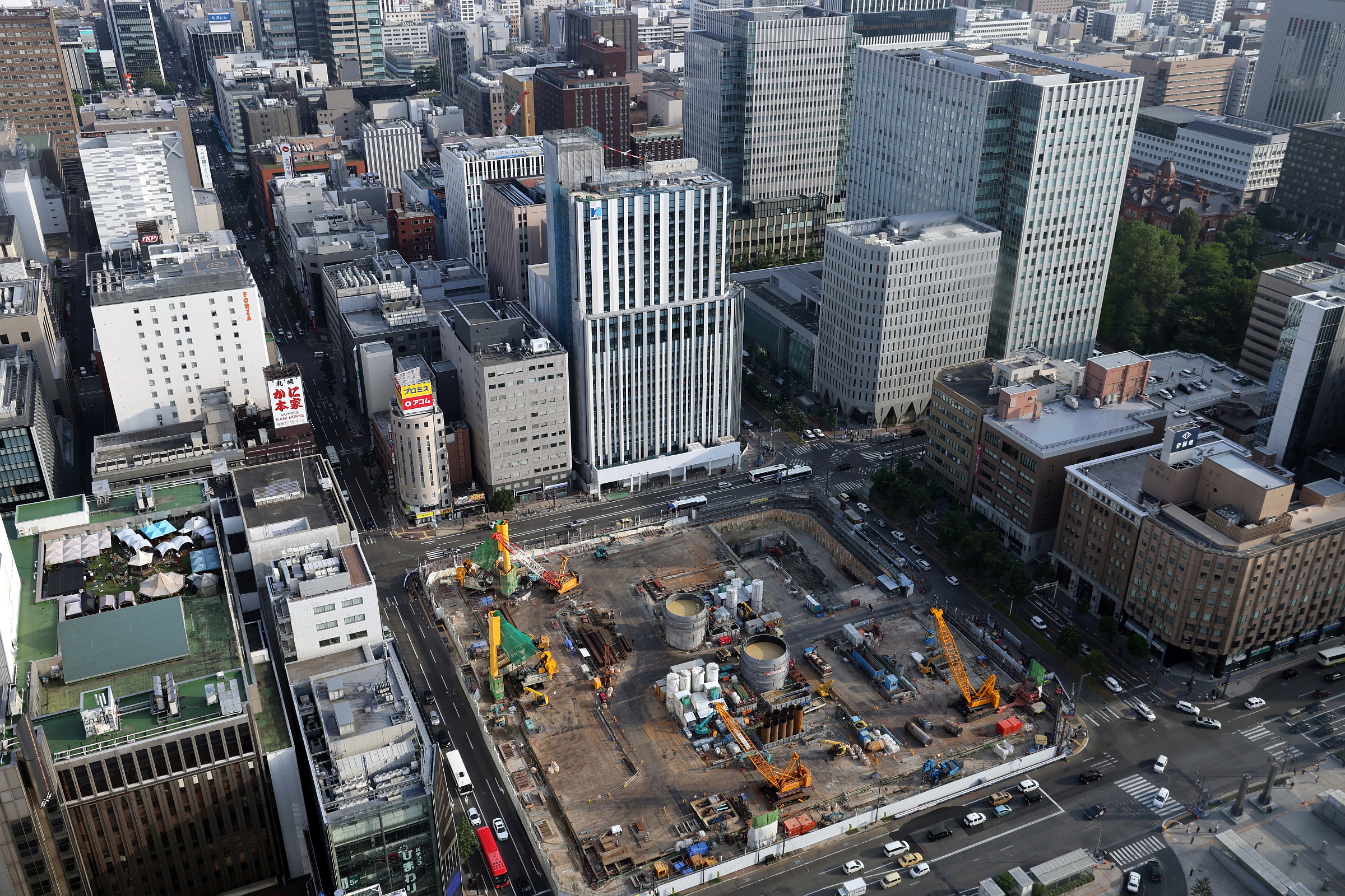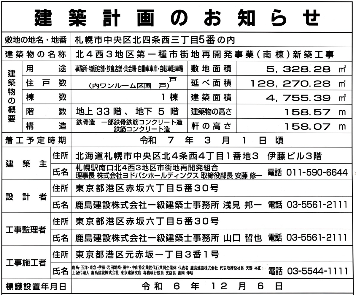 ¡¡JR»¥ËÚ±ØÁ°¤ÎÂ絬ÌϺƳ«È¯¡ÖËÌ4À¾3Ã϶èÂè°ì¼ï»Ô³¹ÃϺƳ«È¯»ö¶È¡×(ÃϾå33³¬¡¢¹â¤µ158.57m)¤Î·úÀßÃϤǤ¹¡£2025ǯ6·î20Æü¤ËJR¥¿¥ï¡¼¤ÎŸ˾¼¼¤«¤é»£±Æ¤·¤Þ¤·¤¿¡£¥è¥É¥Ð¥·¥Û¡¼¥ë¥Ç¥£¥ó¥°¥¹¤äÊ¿ÏÂÉÔÆ°»ºÅù¤Ë¤è¤ëºÆ³«È¯¤Ç¡¢Åö½é¤ÏÃϾå35³¬¡¢¹â¤µÌó200mµ¬ÌϤǷײ褵¤ì¤Æ¤¤¤Þ¤·¤¿¤¬¡¢2025ǯ3·î¤Ëµ¬ÌϽ̾®¤·¤ÆÃ幩¤·¤Æ¤¤¤Þ¤¹¡£¤³¤Îµ»ö¤Ç¤ÏƱºÆ³«È¯¤Î³µÍפä·úÀß¾õ¶·¡¢ÃÏ¿ÞÅù¤òºÜ¤»¤Æ¤¤¤Þ¤¹¡£