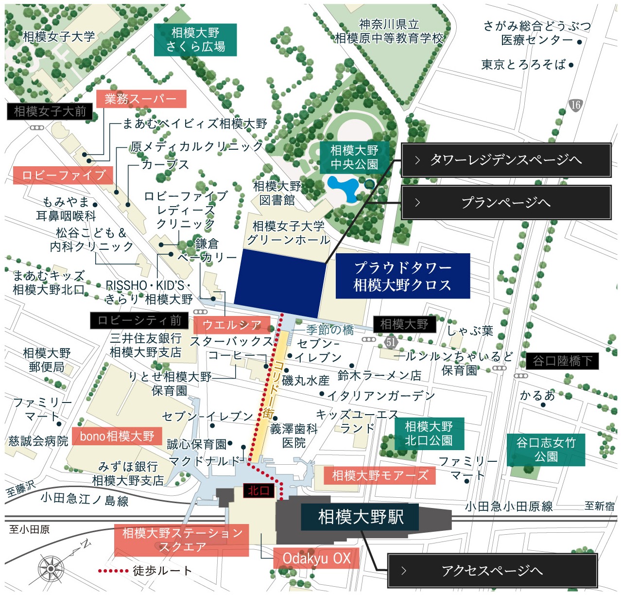 ¡¡ÁêÌÏÂçÌî±Ø¤«¤é¤Ï²°º¬ÉÕ¤¤Î¥Ú¥Ç¥¹¥È¥ê¥¢¥ó¥Ç¥Ã¥¤¬¥³¥ê¥É¡¼³¹¤ÎÌܤÎÁ°¤Þ¤Ç³¤¤¤Æ¤ª¤ê¡¢²°º¬ÉÕ¤¤Î¥³¥ê¥É¡¼³¹¤òÄ̤äơ¢ÆÍ¤Åö¤ê¤Ë¤¢¤ë²°º¬ÉÕ¤¤Î´û¸¥Ç¥Ã¥¤«¤é¡Ö¥×¥é¥¦¥É¥¿¥ï¡¼ÁêÌÏÂçÌ¥í¥¹¡×¤ËÀܳ¤·¤Þ¤¹¡£±Ø¤Î¥Ç¥Ã¥¤È¥³¥ê¥É¡¼³¹¤ÎÀܳÉô°Ê³°¤Ï²°º¬ÉÕ¤¤ÎÊâ¹Ô¼ÔưÀþ¤È¤Ê¤Ã¤Æ¤¤¤Þ¤¹¡£