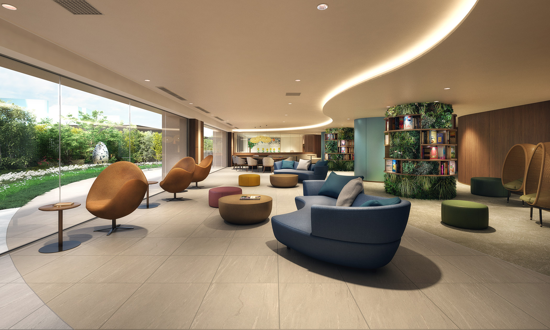¡¡¥¨¥ó¥È¥é¥ó¥¹¥Û¡¼¥ë¤ÏÅ·°æ¹âÌó7.8m¤Î2ÁØ¿áÈ´¤±¤Î¶õ´Ö¤Ç¡¢¾²¤äº¸´±¤Î¶ÊÀþÊɤϿå¤Îή¤ì¤ò¡¢Ãì¤ÏÌÚΩ¤ò¥¤¥á¡¼¥¸¤·¡¢Ìܤ˱Ǥë¤â¤Î¤¹¤Ù¤Æ¤Ë¶ÌÀî¾å¿å¤Î¼«Á³¤Îư¤¤¬É½¸½¤µ¤ì¤Æ¤¤¤Þ¤¹¡£
