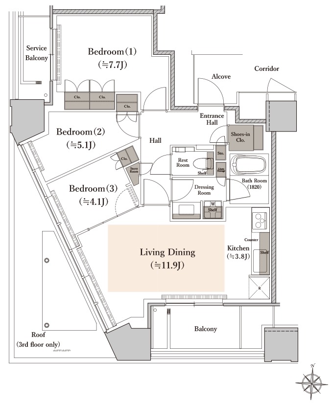 ¡¡3¡Á11³¬¤Î¥×¥ì¥ß¥¢¥à¥Õ¥í¥¢¤ËÇÛÃÖ¤µ¤ì¤ëC¥¿¥¤¥×¤Î´Ö¼è¤ê¿Þ¤Ç¤¹¡£´Ö¼è¤ê¤Ï3LDK+N+SIC¡¢ÀìÍÌÌÀѤÏ73.88Ö¡¢¥Ð¥ë¥³¥Ë¡¼ÌÌÀѤÏ8.13Ö¡¢¥µ¡¼¥Ó¥¹¥Ð¥ë¥³¥Ë¡¼ÌÌÀѤÏ3.87Ö¡¢¥¢¥ë¥³¡¼¥×ÌÌÀѤÏ3.18֤ȤʤäƤª¤ê¡¢9³¬¤ÎƱ¥¿¥¤¥×¤ÎÉô²°¤¬2²¯9400Ëü±ß¤ÇÀèÃå½çÈÎÇäÃæ¤È¤Ê¤Ã¤Æ¤¤¤Þ¤¹¡£