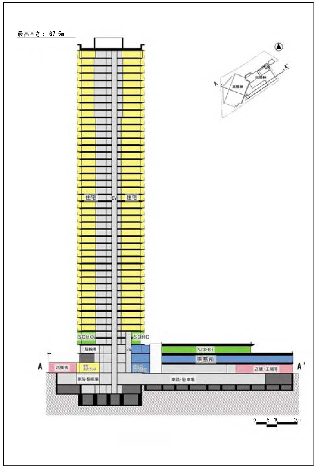 ¡¡¹âÁØÅïÉôʬ¤ÎÄãÁØÉô¤Ë¤Ï»ö̳½ê¡¢SOHO¡¢Å¹ÊÞ¤¬ÇÛÃÖ¤µ¤ì¡¢ÄãÁØÅïÉô¤Ë¤Ï»ö̳½ê¡¢SOHO¡¢Å¹ÊÞ¡¢¹©¾ìÅù¤¬ÇÛÃÖ¤µ¤ì¤Þ¤¹¡£Åö½é¤Î·×²è¤Ç¤ÏÃϾå37³¬¡¢¹â¤µÌó160m¤Ç¡¢ÄãÃæÁØÉô¤Ë¥ª¥Õ¥£¥¹¡¢¹âÁØÉô¤Ë½»Âð¤È¤¤¤¦·×²è¤Ç¤·¤¿¤¬ÂçÉý¤ËÊѹ¹¤µ¤ì¤Æ¤¤¤Þ¤¹¡£