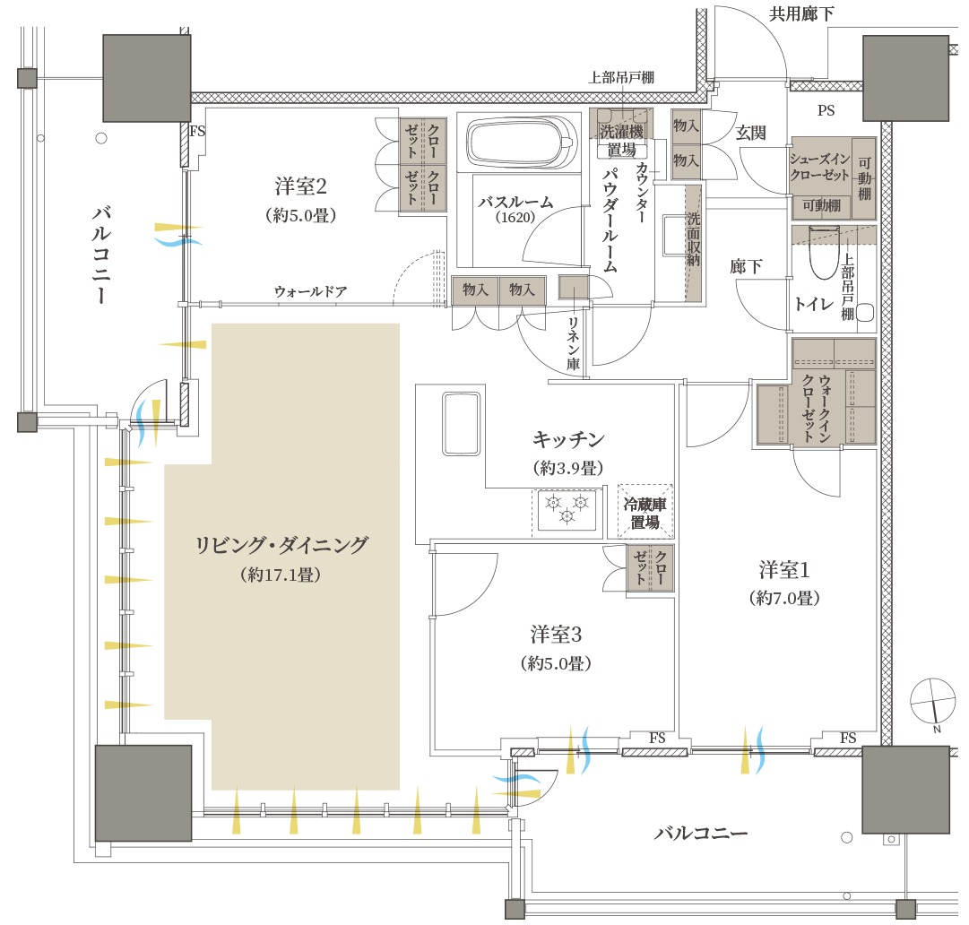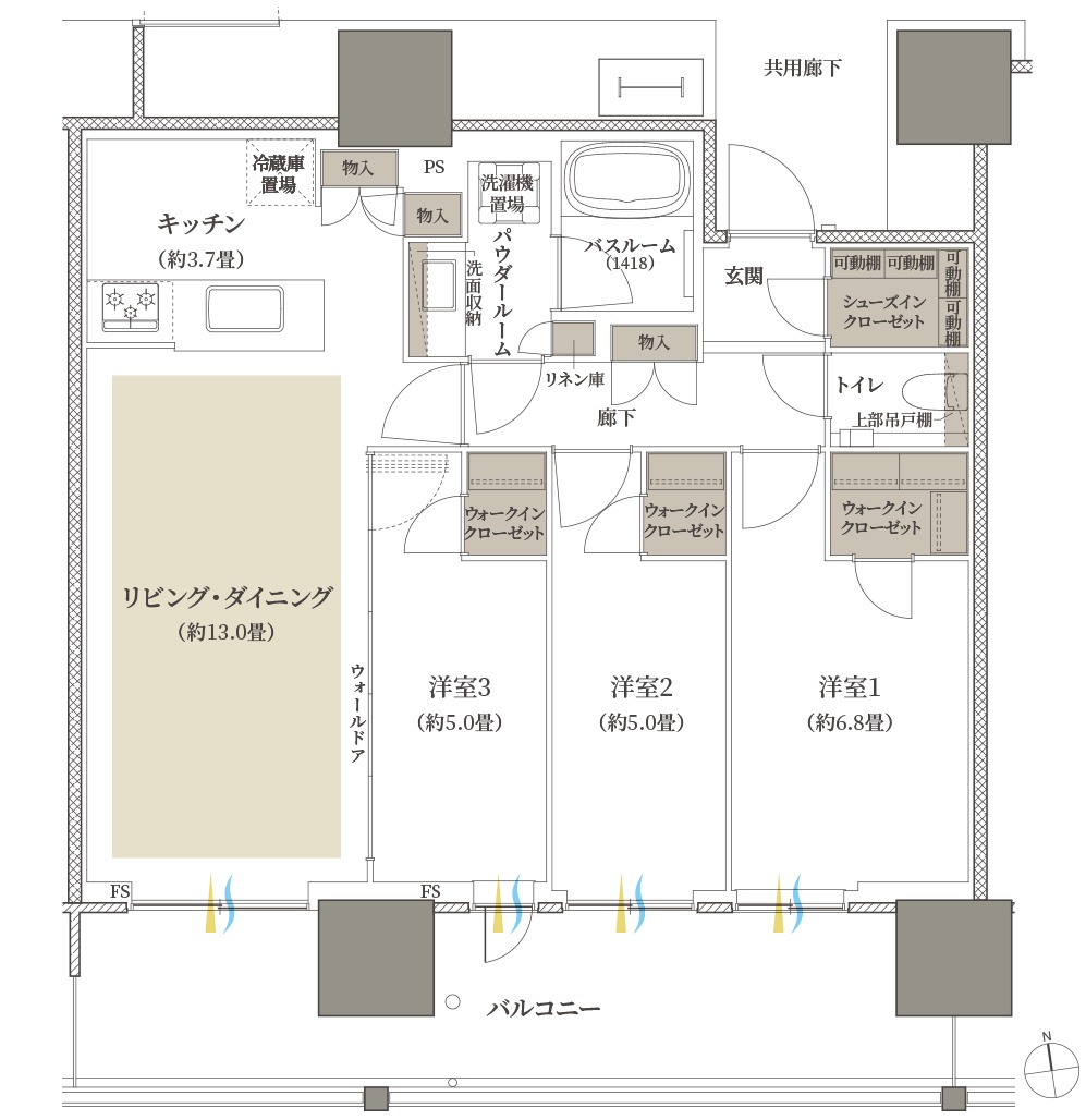 ¡¡¥¹¡¼¥Ú¥ê¥¢¥Õ¥í¥¢¤ËÇÛÃÖ¤µ¤ì¤ë75C¥¿¥¤¥×¤Î´Ö¼è¤ê¿Þ¤Ç¤¹¡£´Ö¼è¤ê¤Ï3LDK+3WIC+SIC¡¢ÀìÍÌÌÀѤÏ76.23Ö¡¢¥Ð¥ë¥³¥Ë¡¼ÌÌÀѤÏ18.64֤ȤʤäƤ¤¤Þ¤¹¡£