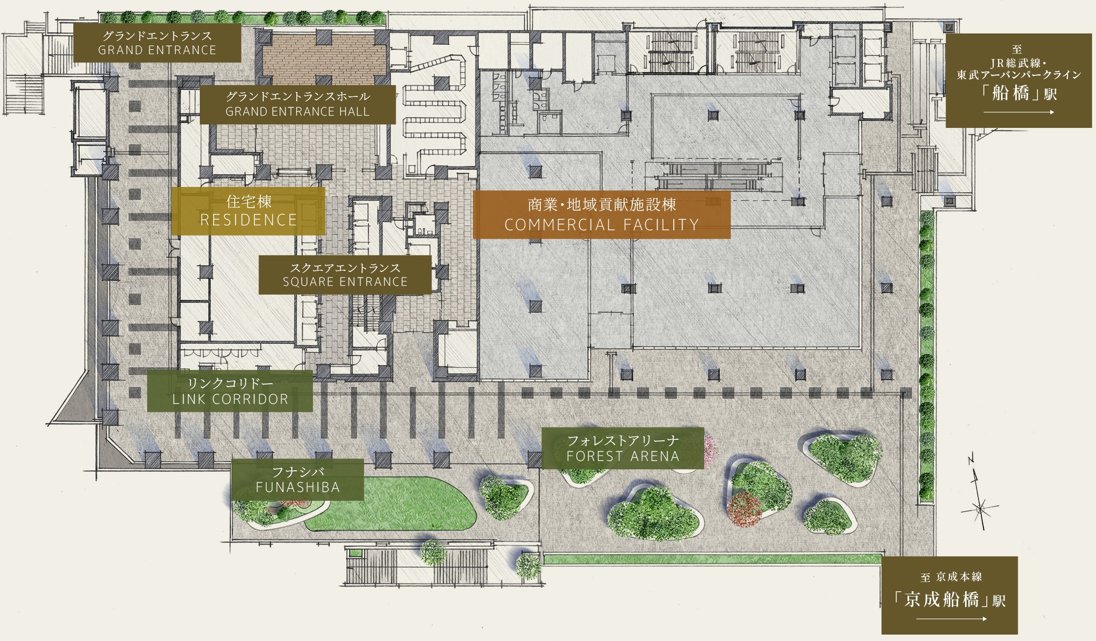 ¡¡1¡Á3³¬¤Ë¤Ï¾¦¶È»ÜÀß¡¢4¡Á6³¬¤Ë¤Ï»ö̳½ê¤¬ÇÛÃÖ¤µ¤ì¡¢2³¬¤Ë¤ÏÁ¥¶¶¥¨¥ê¥¢¼þÊդο¢À¸¤ËÇÛθ¤·¤¿ÎÐˤ«¤Ê¿¢ºÏ¤òÇÛ¤·¤¿¹¾ì¡Ö¥Õ¥©¥ì¥¹¥È¥¢¥ê¡¼¥Ê¡×¤¬Àߤ±¤é¤ì¤Þ¤¹¡£