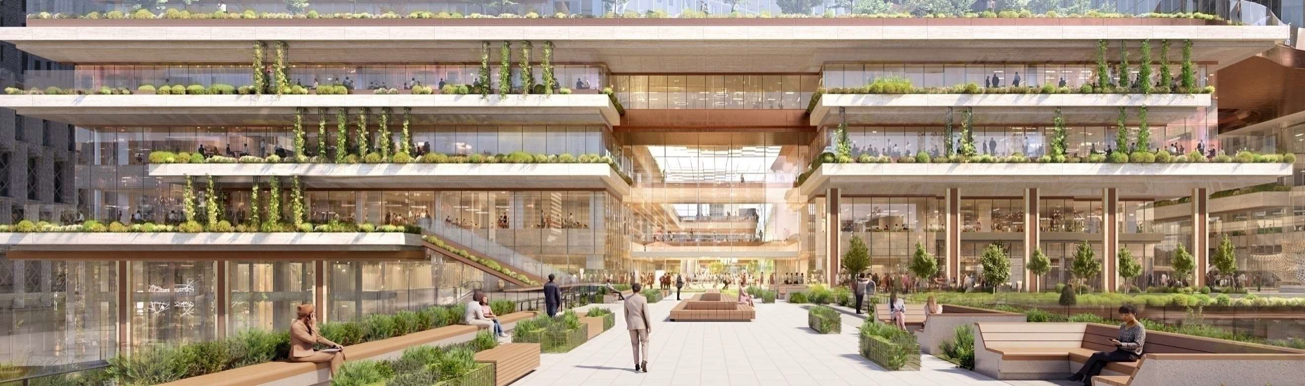 ¡¡ÆîÀ¾Â¦¤È¤Ê¤ëÆâ¹¬Ä®¸òº¹ÅÀ¤«¤é»£±Æ¡£¤³¤Îº¸Â¦¤Ë¡ÖNTTÆüÈæÃ«¥¿¥ï¡¼¡×¤¬·úÀßÃæ¤Ç¡¢¤µ¤é¤Ëº¸Â¦¤Ç¤ÏÄë¹ñ¥Û¥Æ¥ë¤Î·ú¤ÆÂؤ¨¤Ë¤è¤ëÃϾå46³¬¡¢¹â¤µÌó230m¤Î¥Î¡¼¥¹¥¿¥ï¡¼¤ÈÃϾå29³¬¡¢¹â¤µÌó145m¤Î¿·ËÜ´Û¤¬·×²è¤µ¤ì¤Æ¤¤¤Þ¤¹¡£¾ÍèŪ¤Ë¤Ï¹â¤µÌó230m¤Î͹âÁإӥ뤬3Åï·ú¤Áʤַײè¤Ç¤¹¡£