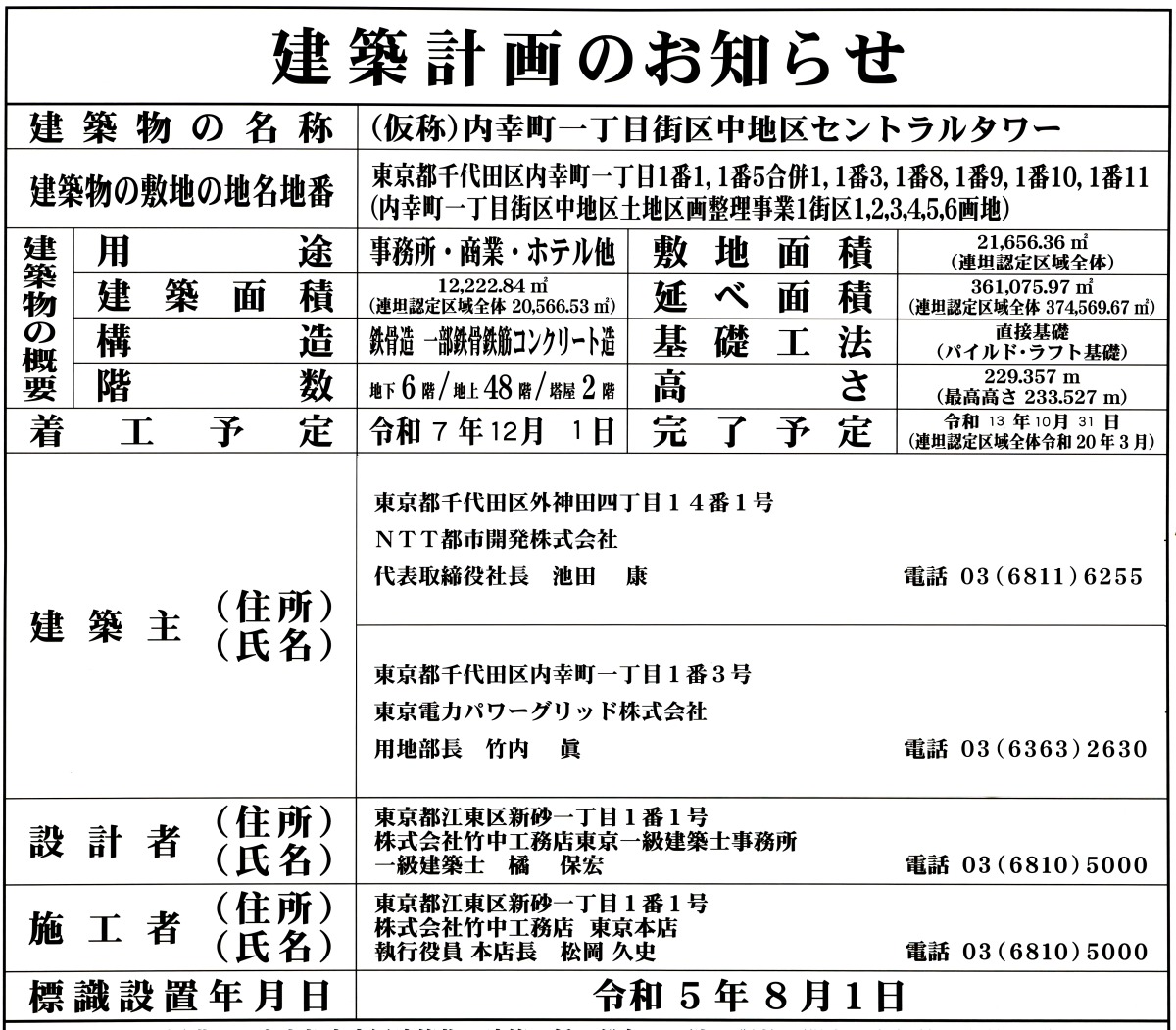 ¡¡ÆüÈæÃ«¸ø±àÁ°¤ÎÆüÈæÃ«Ä̤ê±è¤¤¤Ç·úÀßÃæ¤Î¡ÖÆâ¹¬Ä®°ìÃúÌܳ¹¶èÆîÃ϶èÂè°ì¼ï»Ô³¹ÃϺƳ«È¯»ö¶È¡×(ÃϾå46³¬¡¢ºÇ¹â¹â¤µ232.52m)¤Ç¤¹¡£2026ǯ1·î11Æü¤Ë»£±Æ¤·¤Þ¤·¤¿¡£ÄãÁØÉô¤Ë¾¦¶È»ÜÀߤä¥Û¥Æ¥ë¤¬Æþ¤ë͹âÁØ¥ª¥Õ¥£¥¹¥Ó¥ë¤Ç¡¢Æâ¹¬Ä®±Ø¤ä¿·¶¶±Ø¤Ë¤âÃϲ¼ÄÌÏ©¤ÇÀܳ¤¹¤ë·×²è¤È¤Ê¤Ã¤Æ¤¤¤Þ¤¹¡£¤Þ¤¿¡¢¤³¤Îº¸Â¦¤Ç¤Ï¡ÖNTTÆüÈæÃ«¥¿¥ï¡¼¡×(ÃϾå48³¬¡¢ºÇ¹â¹â¤µ233.527m)¤¬·úÀßÃæ¤Ç¤¹¡£¤³¤Îµ»ö¤Ç¤ÏƱºÆ³«È¯¤Î³µÍפä·úÀß¾õ¶·¡¢ÃÏ¿ÞÅù¤òºÜ¤»¤Æ¤¤¤Þ¤¹¡£