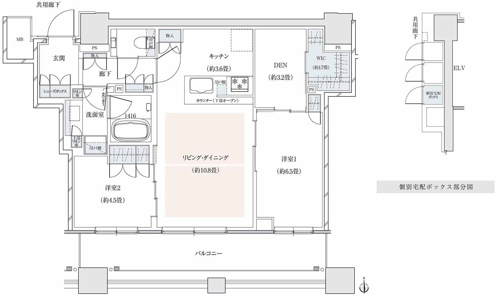 ¡¡G-68H¥¿¥¤¥×¤Î´Ö¼è¤ê¿Þ¤Ç¤¹¡£´Ö¼è¤ê¤Ï2LDK+DEN+WIC¡¢ÀìÍÌÌÀѤÏ68.58֡ʸÄÊÌÂðÇۥܥ寥¹0.74Ö¡Ë¡¢¥Ð¥ë¥³¥Ë¡¼ÌÌÀÑ14.84֤ȤʤäƤ¤¤Þ¤¹¡£