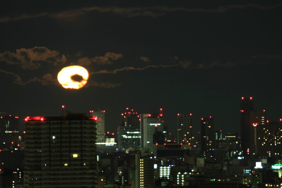 飛行船ネタは終わりにして、何日か前の夜中に目が覚めるとちょうど月が沈むところでした。月が見えなくなるのを待って寝直しました。 左手前のタワーマンションがライオンズタワー大島で、地上30階、高さ99.7mの分譲のタワーマンションです。その右奥に見えるのが秋葉原の超高層ビル群です。 | |