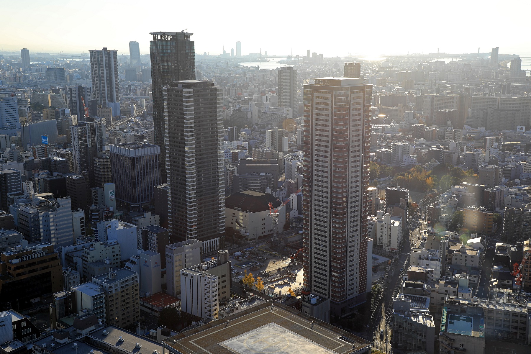 ¡¡¡ÖÇßÅÄ¥¹¥«¥¤¥Ó¥ë¡×¤ÎÅ¸Ë¾Âæ¤«¤é¸«¤¿ÍͻҤǤ¹¡£º¸¤«¤é¡Ö¥¶¡¦¥»¥ó¥È¥é¥ë¥Þ¡¼¥¯¥¿¥ï¡¼¡×(ÃϾå37³¬¡¢¹â¤µ122.5m)¡¢¡Ö¥Ö¥é¥ó¥º¥¿¥ï¡¼ÇßÅÄ North¡×(ÃϾå50³¬¡¢¹â¤µ168.44m)¡¢¡Ö¥¶¡¦¥Õ¥¡¥¤¥ó¥¿¥ï¡¼ ÇßÅÄ˺ê¡×(ÃϾå45³¬¡¢¹â¤µ151.6m)¤Ç¡¢°ìÈÖ±¦¤Ï¥ª¥Õ¥£¥¹¥Ó¥ë¤Ç¡Ö¥Ô¥¢¥¹¥¿¥ï¡¼¡×(ÃϾå28³¬¡¢¹â¤µ132m)¤Ç¤¹¡£