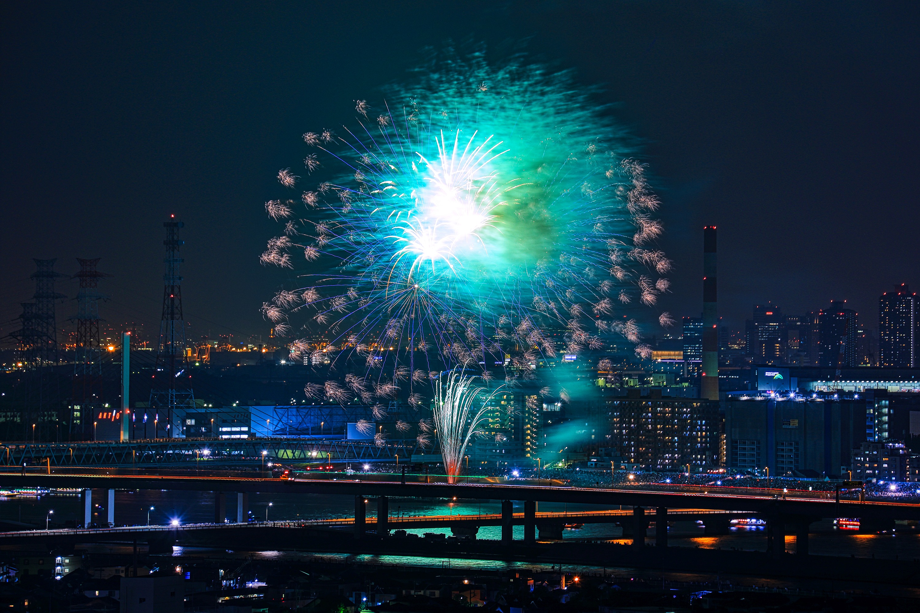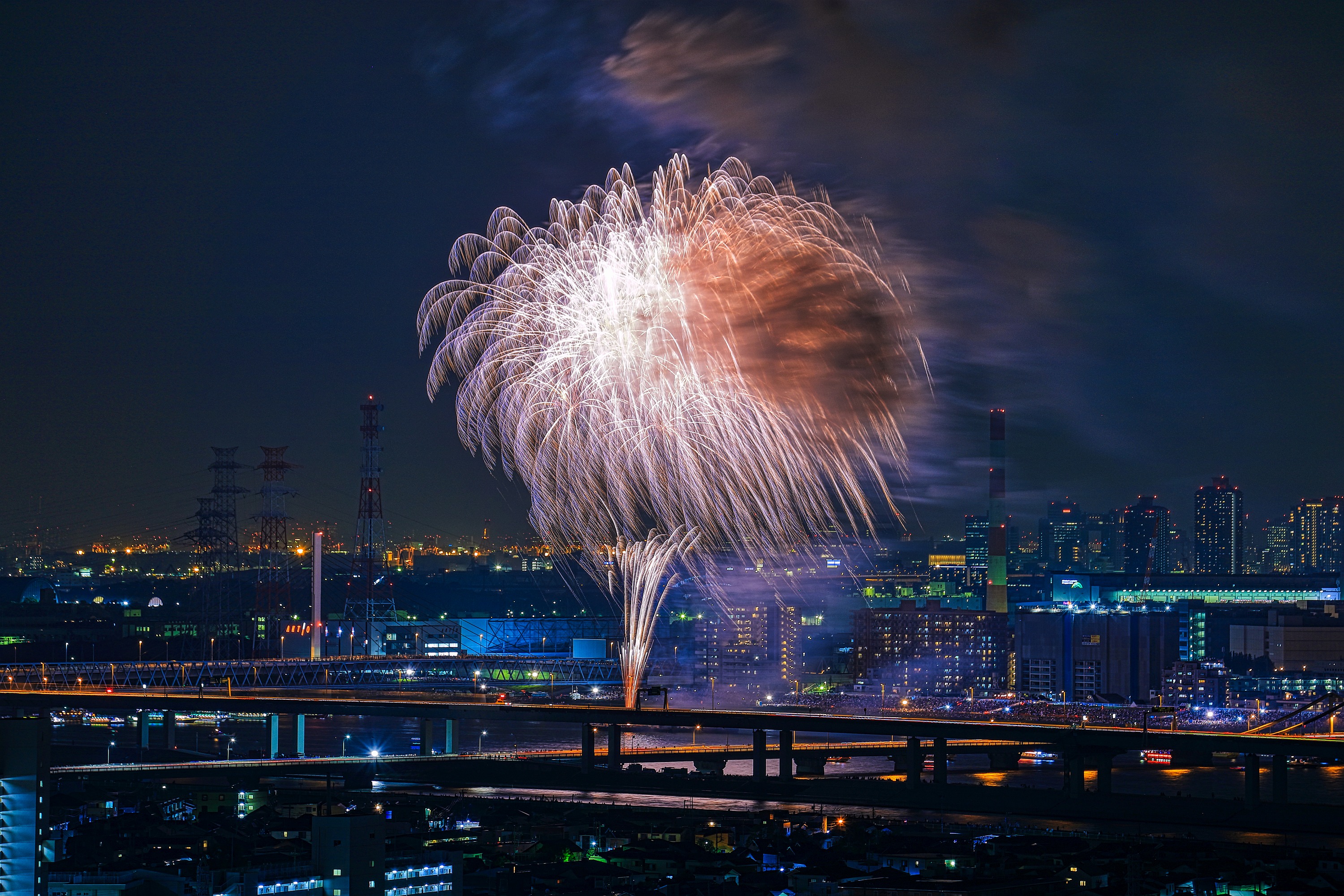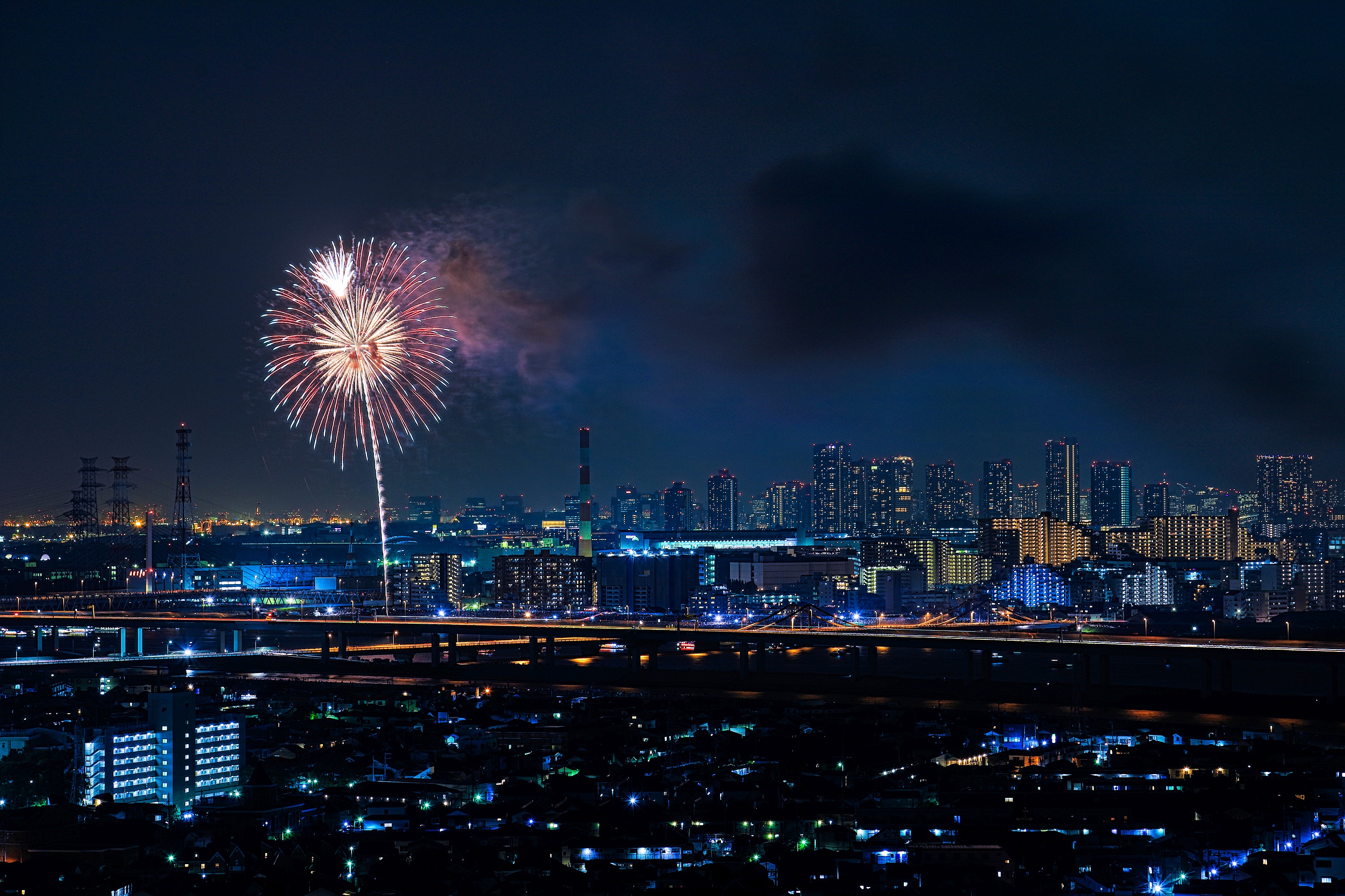 約32キロ離れた地点から撮影しているので花火は見えても音は聞こえません。