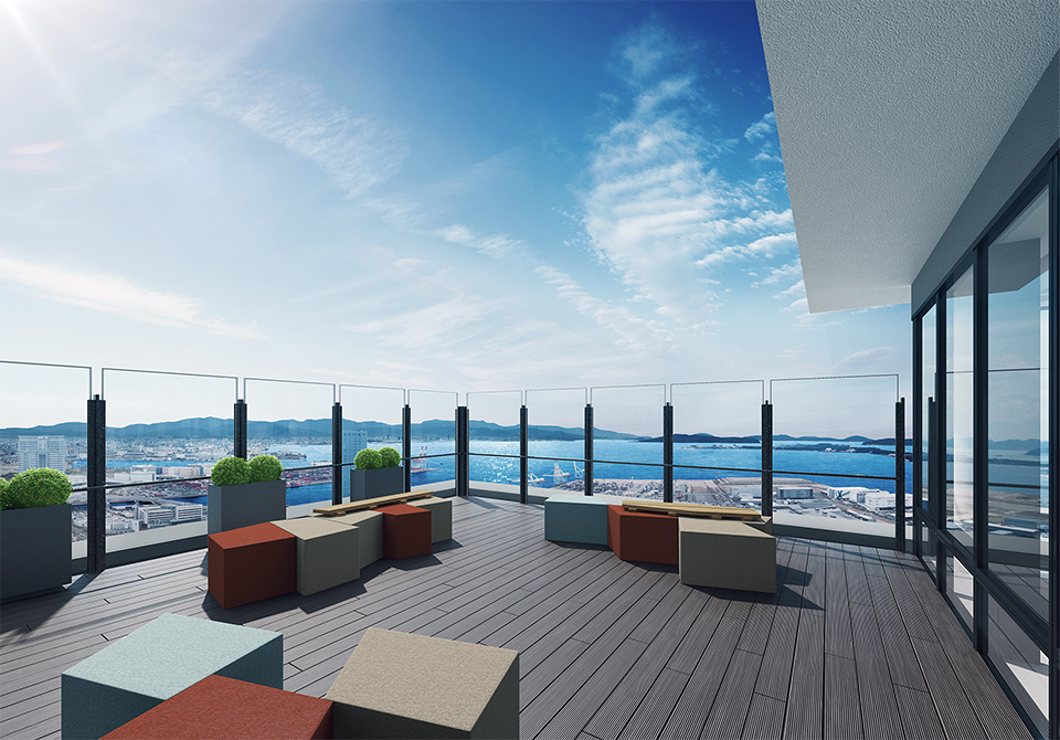 ¡¡WEST¤Î¹â¤µ152mÃÏÅÀ¤È¤Ê¤ëÃϾå47³¬¤Ë¤Ï¶¦ÍÑ»ÜÀߤȤ·¤Æ¥¹¥«¥¤¥é¥¦¥ó¥¸¤¬ÀßÃÖ¤µ¤ì¤Þ¤¹¡£