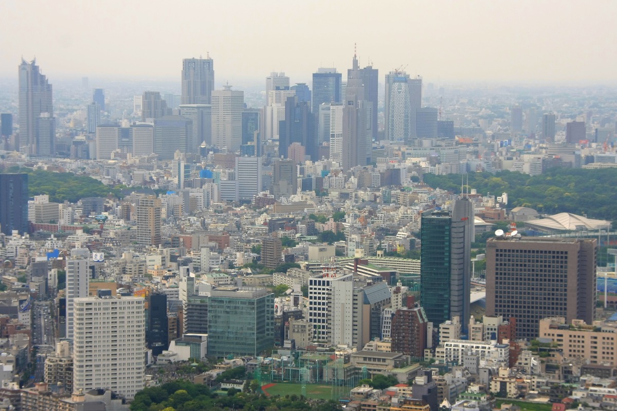 新宿方面です。手前は青山です。新宿の超高層ビル群の中にモード学園コクーンタワーも見えていますが、やっぱり遠くから見るとあまり目立たないですね。 今回は我慢が出来ずに天気が悪いのに展望室に行きましたが、やっぱり天気が悪いと眺めもイマイチですね。次回は空気の澄んだ晴天の日を狙って行きたいです。 |
