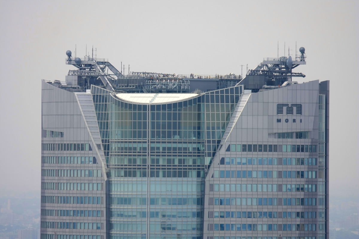 スカイデッキから見た東京ミッドタウン方面です。このようにオブジェのような部分があってミッドタウン方面は少ししか見えません。 | |