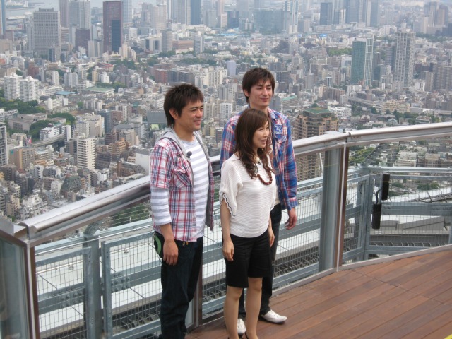 おまけ。 この日はスカイデッキで森口博子と博多華丸・大吉が番宣の撮影をしていました。「日曜夜はナイトシャッフル!ゲストは私森口博子です!」と言っていた気がします。調べてみたら福岡のローカル番組みたいですね。この番宣が見れないのはちょっと残念。 撮影後、博多華丸は修学旅行で来ていた男子高校生と記念写真に応じていました。「そのとぉ〜り」のポーズで撮るサービスっぷりで好感が持てました。 |