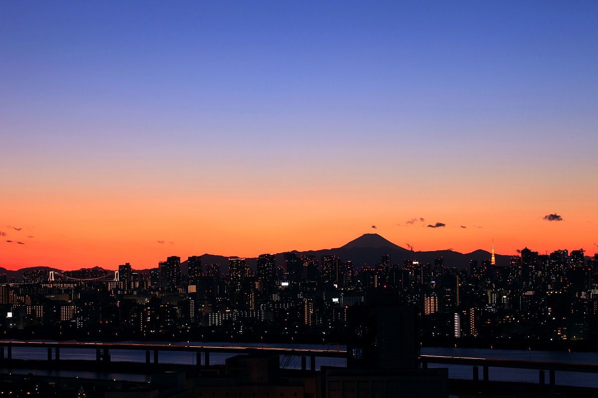太陽が沈むにつれて富士山らしき姿が見えたのですが…