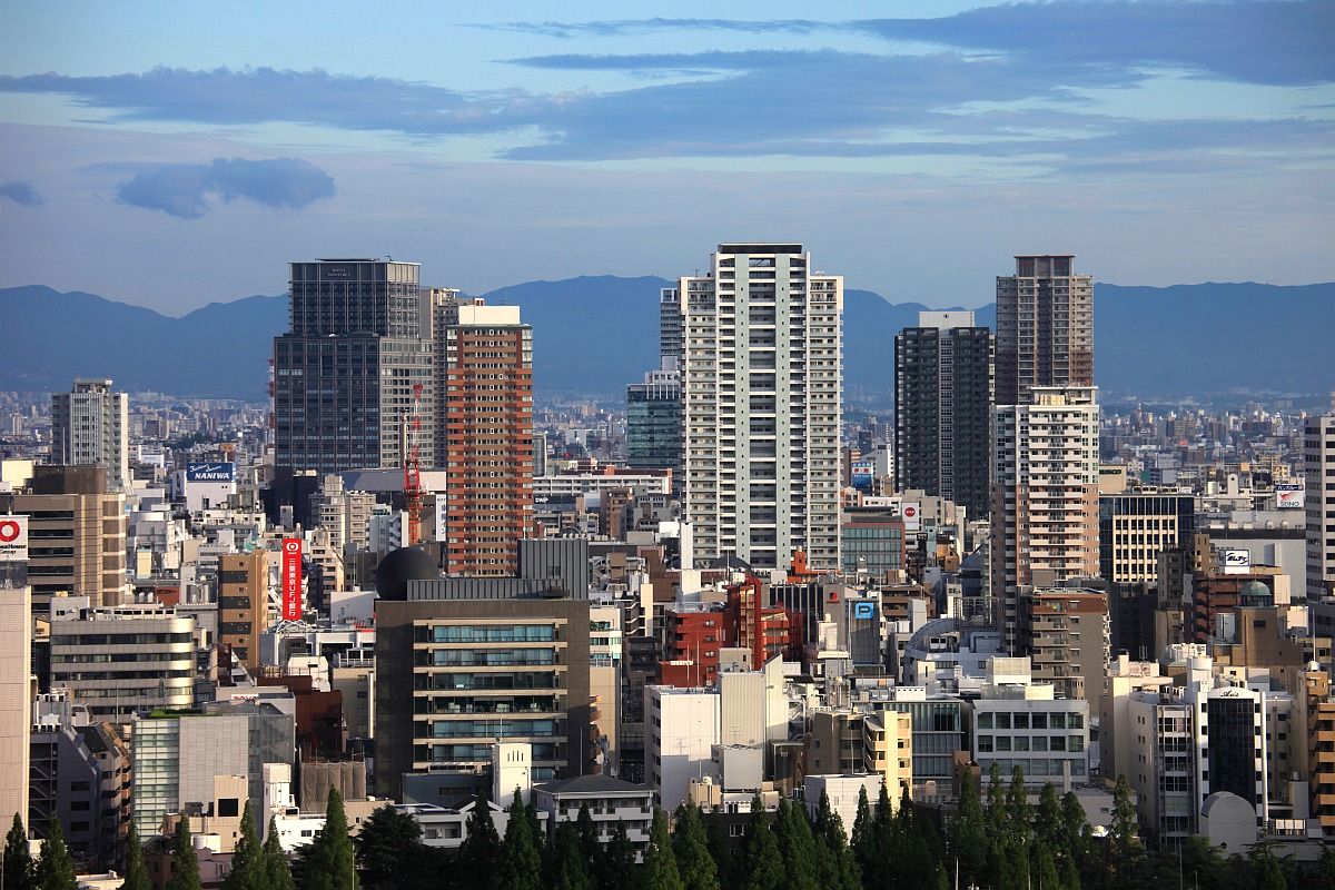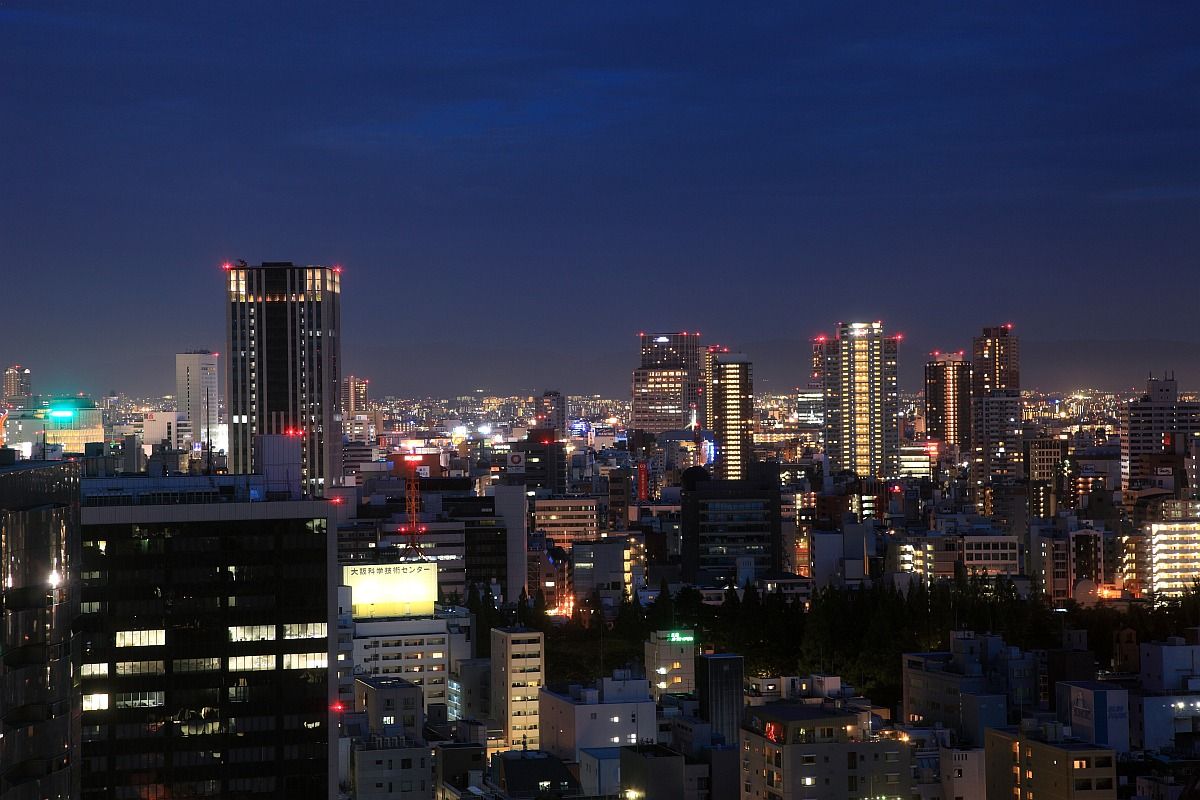 上の空撮の1ヶ月半くらい前に「湊町リバープレイス」から撮影しました。