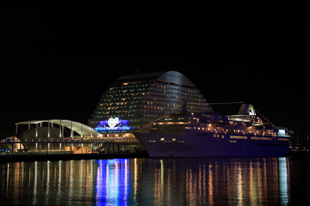 「神戸メリケンパークオリエンタルホテル」です。この日は「ぱしふぃっくびいなす」が隣に停泊していました。