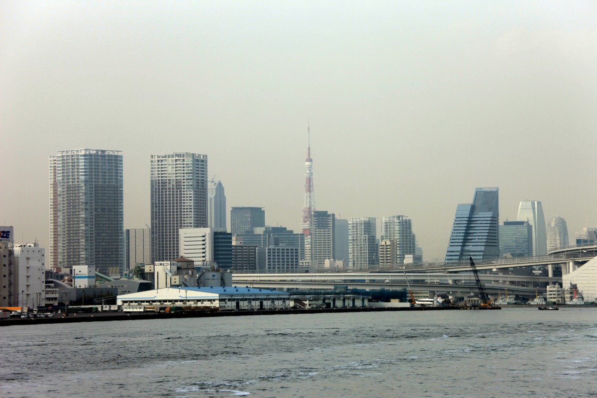 「レストランシップ・ヴァンテアン」という 竹芝から東京湾クルーズをする船からの眺めです。 この日は空気が悪く濁っていましたが 「竹芝客船ターミナル」の乗船場に着く直前 「東京スカイツリー」が見えました。 中央奥に薄っすらと見えるのがスカイツリーです。 もっと見えると思っていましたが 頭だけがちょこんとでした。 撮影時点でのスカイツリーの高さは215mで 完成時は約3倍の634mの高さになりますが 割りと内陸に建っているので 海上からだと高層ビルに隠れてしまって 意外と見える場所が少なそうです。 |