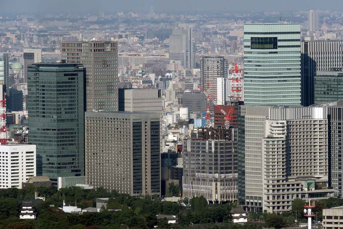 ¡¡Ï»ËÜÌڥҥ륺¤«¤é»£±Æ¤·¤¿Âç¼êÄ®¤Î͹âÁإӥ뷲¤Ç¤¹¡£Â¾ì¤Çʤ¤ï¤ì¤Æ¤¤¤ë¥Ó¥ë¤¬²òÂÎÃæ¤Î¡Ö»°°æÊª»º¥Ó¥ë¡×¤Ç¤¹¡£¤½¤Î±¦¸å¤í¤Ç·úÀßÃæ¤Î͹âÁØ¥Ó¥ë¤Ï¡Ö(²¾¾Î)Âç¼êÄ®°ìÃúÌÜÂè3Ã϶èÂè°ì¼ï»Ô³¹ÃϺƳ«È¯»ö¶È AÅï¡×(ÃϾå31³¬¡¢¹â¤µ168.28m)¤Ç¤¹¡£¤½¤·¤Æ¤µ¤é¤Ë¤½¤Î±¦Â¦¤ÎÇö¤¤ÀĤäݤ¤¥Ó¥ë¤¬¡ÖÆÉÇ俷ʹÅìµþËܼҥӥë¡×(ÃϾå33³¬¡¢¹â¤µ200m)¤Ç¤¹¡£¡ÖÂç¼êÄ®°ìÃúÌÜ2Ã϶賫ȯ»ö¶È¡×¤ÎBÅï¤Ï¤½¤ÎÆÉÇ俷ʹ¤Î¥Ó¥ë¤ÈƱ¤¸¤¯¤é¤¤¤Î¹â¤µ¤È¤Ê¤ê¤Þ¤¹¡£