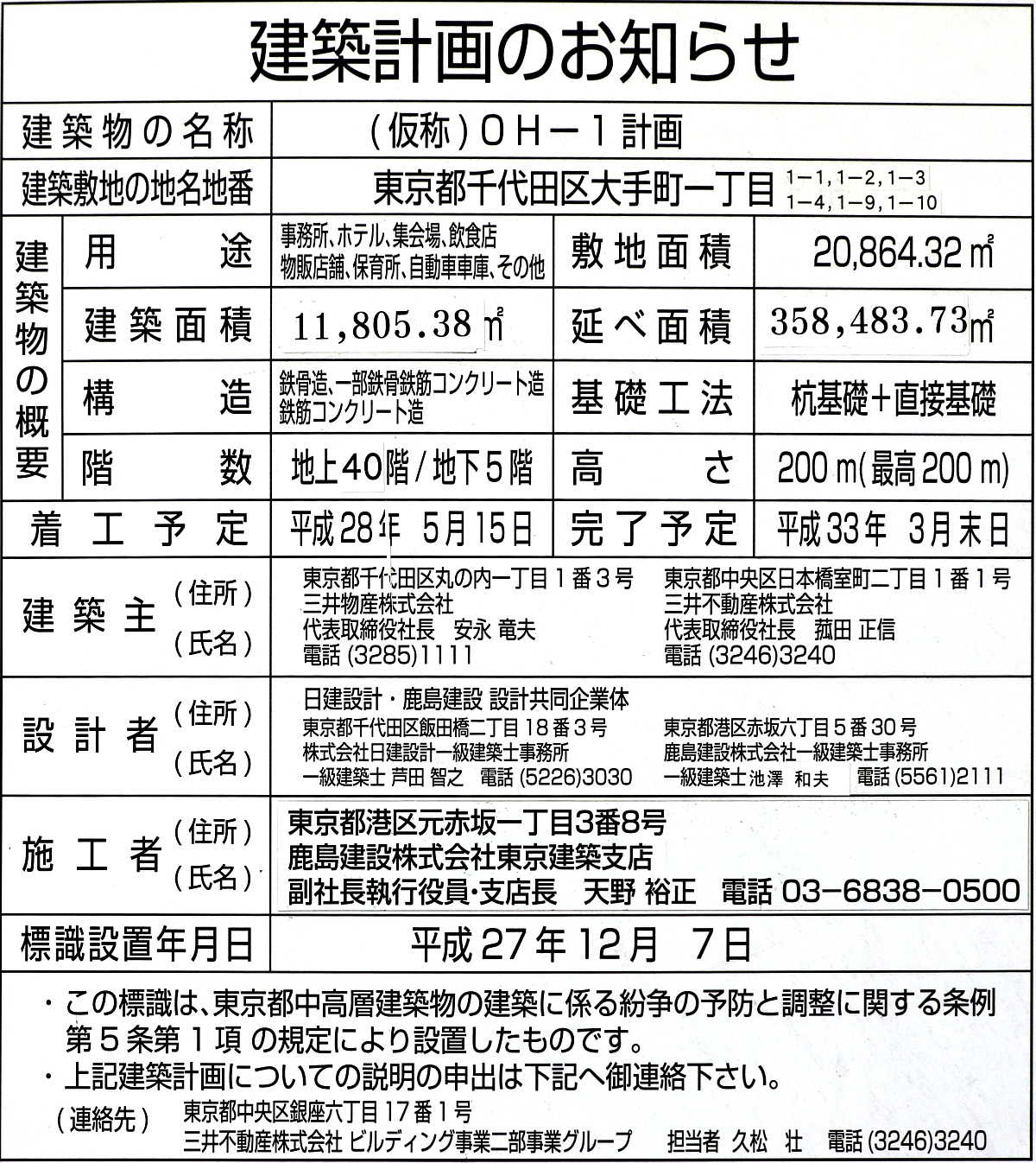 ¡¡¹ÄµïÅì¸æ±ñ¤ÎÅ¸Ë¾Âæ¤«¤é¸«¤¿Âç¼êÄ®¤Ç·úÀßÃæ¤Î¡Ö(²¾¾Î)OH-1·×²è¡×¤Ç¤¹¡£Ãæ±û¼êÁ°¤¬ÃϾå31³¬¡¢¹â¤µÌó160m¤ÎAÅï¤Ç¤½¤Î¸å¤í¤Î¤Þ¤À¥¿¥ï¡¼¥¯¥ì¡¼¥ó¤¬1µ¡»Ä¤Ã¤Æ¤¤¤ë¤Î¤¬ÃϾå40³¬¡¢¹â¤µ200m¤ÎBÅï¤Ç¤¹¡£