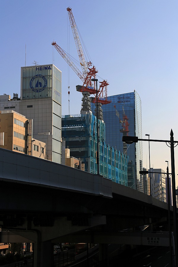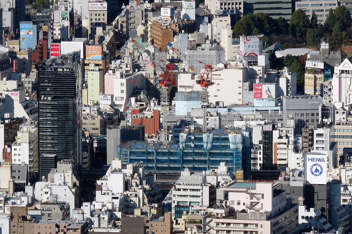 ¡¡¾åÌî¤ÎÉÔǦÃÓ¤«¤é¸«¤¿ÅìÅ·¹È¤Ç¤¹¡£±¦Â¦¤¬¡ÖµìÅìÅ·¹È¾åÌîËÜŹ¡×¤Ç²òÂι©»ö¤¬»Ï¤Þ¤Ã¤Æ¤¤¤Þ¤¹¡£²òÂθå¤ÎÀ×ÃϤÏÅìµþ·úʪ¤Ë¤è¤ë¥¿¥ï¡¼¥Þ¥ó¥·¥ç¥ó¡Ö(²¾¾Î)¾åÌîÃÓǷü¥×¥í¥¸¥§¥¯¥È¡×(ÃϾå36³¬¡¢ºÇ¹â¹â¤µ131.20m)¤¬·úÀߤµ¤ì¤Þ¤¹¡£º¸Â¦¤Î¡ÖLUCIS¡×(ÆÉ¤ß¡§¥ë¡¼¥¥¹)¤Îʸ»ú¤¬¤¢¤ë¥Ó¥ë¤¬¿·¤·¤¯·úÀߤµ¤ì¤¿¡ÖÅìÅ·¹È¾åÌîËÜŹ¡×(ÃϾå9³¬¡¢ºÇ¹â¹â¤µ50.15m)¤Ç¤¹¡£