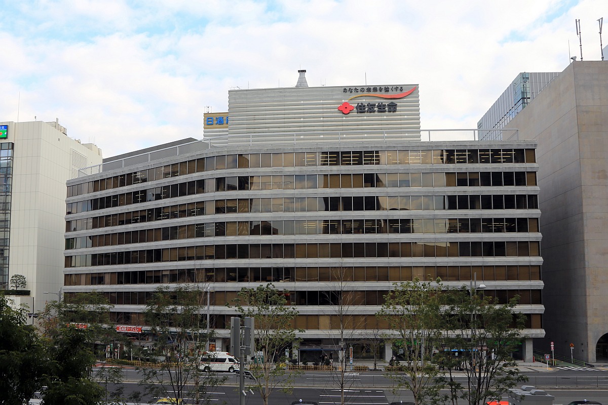 東京駅のグランルーフから撮影した「城東小学校」方面です。東京駅からはこの「住友生命八重洲ビル」が壁となって学校は見えません。そのためこの後ろに小学校があること自体を知らない人の方が多いのではないでしょうか?