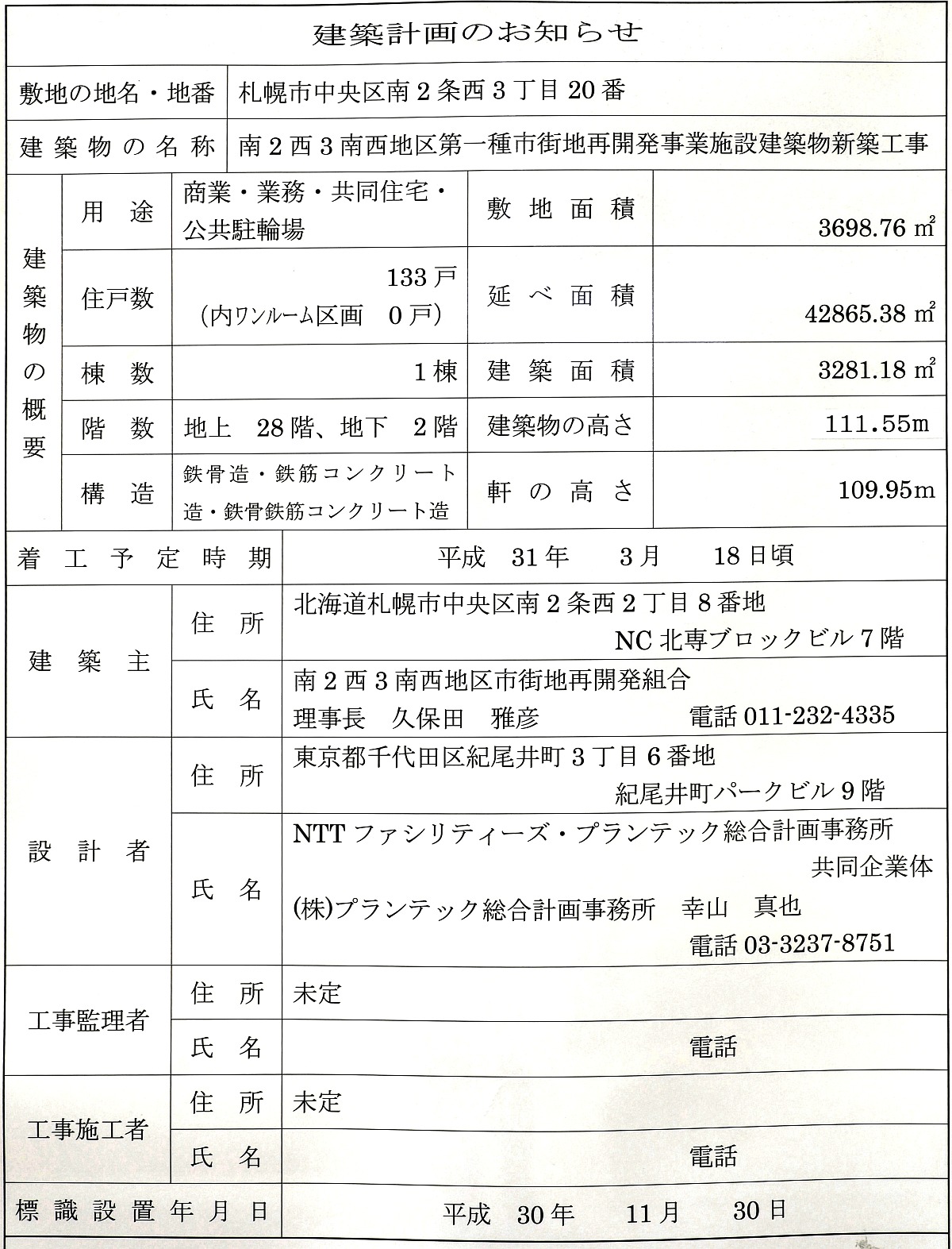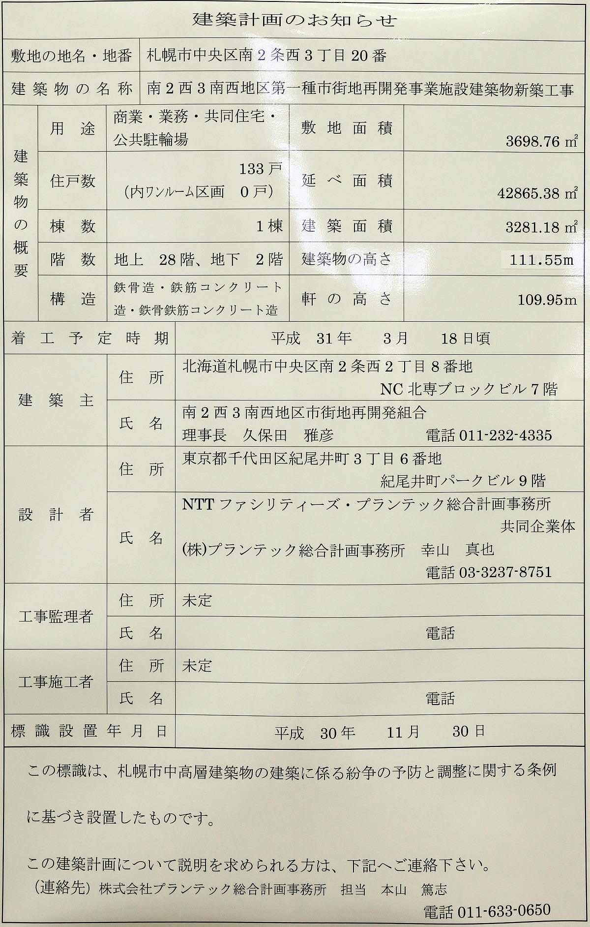 ¡¡µ¬ÌϤÏÃϾå28³¬¡¢Ãϲ¼2³¬¡¢¹â¤µ109.95m¡¢ºÇ¹â¹â¤µ117.14m¡¢ÉßÃÏÌÌÀÑ3,698.76Ö¡¢·úÃÛÌÌÀÑÌó3,280Ö¡¢±ä¾²ÌÌÀÑÌó4Ëü3610Ö¡¢Áí¸Í¿ô133¸Í¡¢·úÃÛ¼ç¤ÏÆî2À¾3ÆîÀ¾Ã϶è»Ô³¹ÃϺƳ«È¯Áȹç¤Ç»²²ÃÁȹç°÷¤ÏÂçµþ¡¢¥æ¥Ë¥Û¡¼¡¢»¥ËÚ»Ô¡¢Ê¬¾ù¥Þ¥ó¥·¥ç¥ó¤ÎÇä¼ç¤ÏÂçµþ¡¢Àß·×¼Ô¤ÏNTT¥Õ¥¡¥·¥ê¥Æ¥£¡¼¥º¡¦¥×¥é¥ó¥Æ¥Ã¥¯Áí¹ç·×²è»ö̳½ê¡¢»Ü¹©¼Ô¤Ïº´Æ£¹©¶È¡¦´äÅÄÃϺê·úÀß¡¦´äÁÒ·úÀß¶¦Æ±´ë¶ÈÂΤÇ2023ǯ4·î28Æü½×¹©¡¢2023ǯ½Õ³«¶È¡¢2023ǯ5·î10ÆüÆþµï³«»ÏͽÄê¤È¤Ê¤Ã¤Æ¤¤¤Þ¤¹¡£