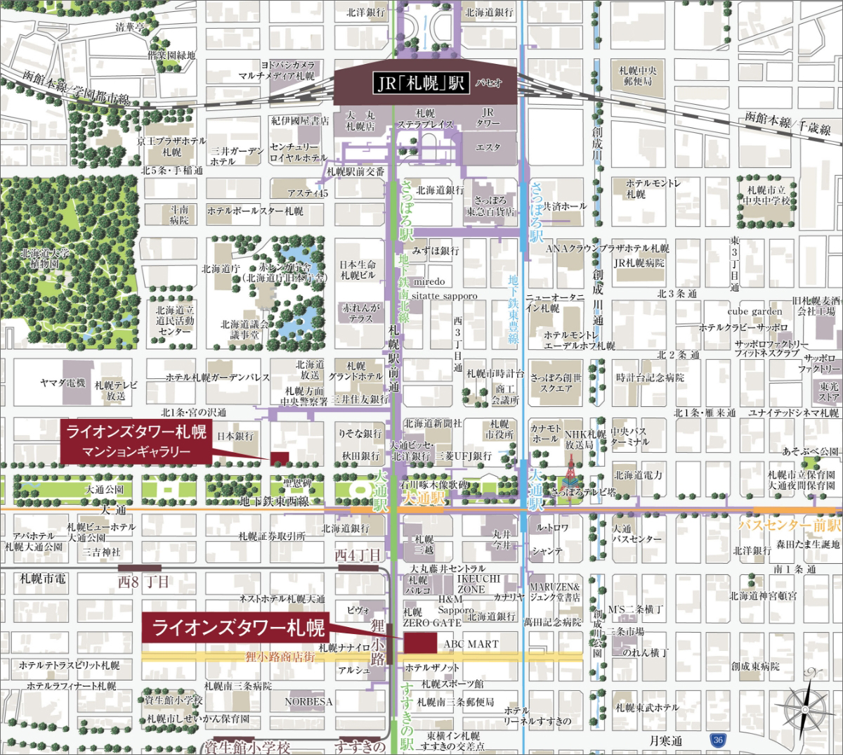 ¡¡¡Ömoyuku SAPPORO¡Ê¥â¥æ¥¯ ¥µ¥Ã¥Ý¥í¡Ë¡×¤ÏÃϲ¼³¹¤Î¥Ý¡¼¥ë¥¿¥¦¥ó¤Èľ·ë¤·¤Æ¤ª¤ê¡¢¤½¤Î¥Ý¡¼¥ë¥¿¥¦¥ó¤«¤é»¥ËÚ»Ô±ÄÃϲ¼Å´ÆîËÌÀþ¡Ö¤¹¤¹¤¤Î¡×±Ø¤ä»¥ËÚ»Ô±ÄÃϲ¼Å´ÆîËÌÀþ¡¦ÅìÀ¾Àþ¡ÖÂçÄ̡ױؤ˹Ԥ¯¤³¤È¤¬¤Ç¤¤Þ¤¹¡£¤Þ¤¿¡¢µ÷Î¥¤Ï¤¢¤ê¤Þ¤¹¤¬JR¡Ö»¥ËڡױؤޤÇÃϲ¼¤À¤±¤Ç¹Ô¤¯¤³¤È¤â²Äǽ¤Ç¤¹¡£