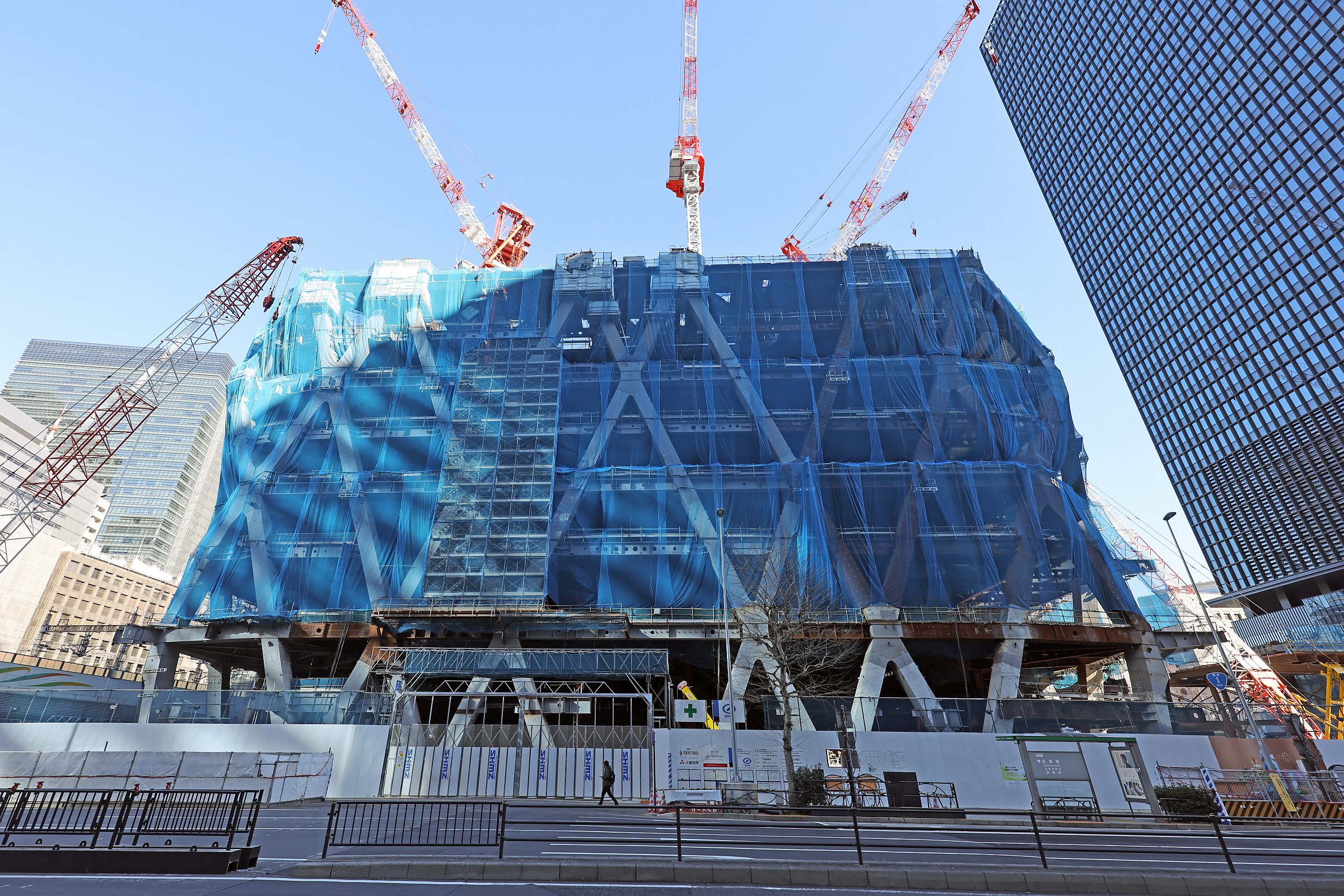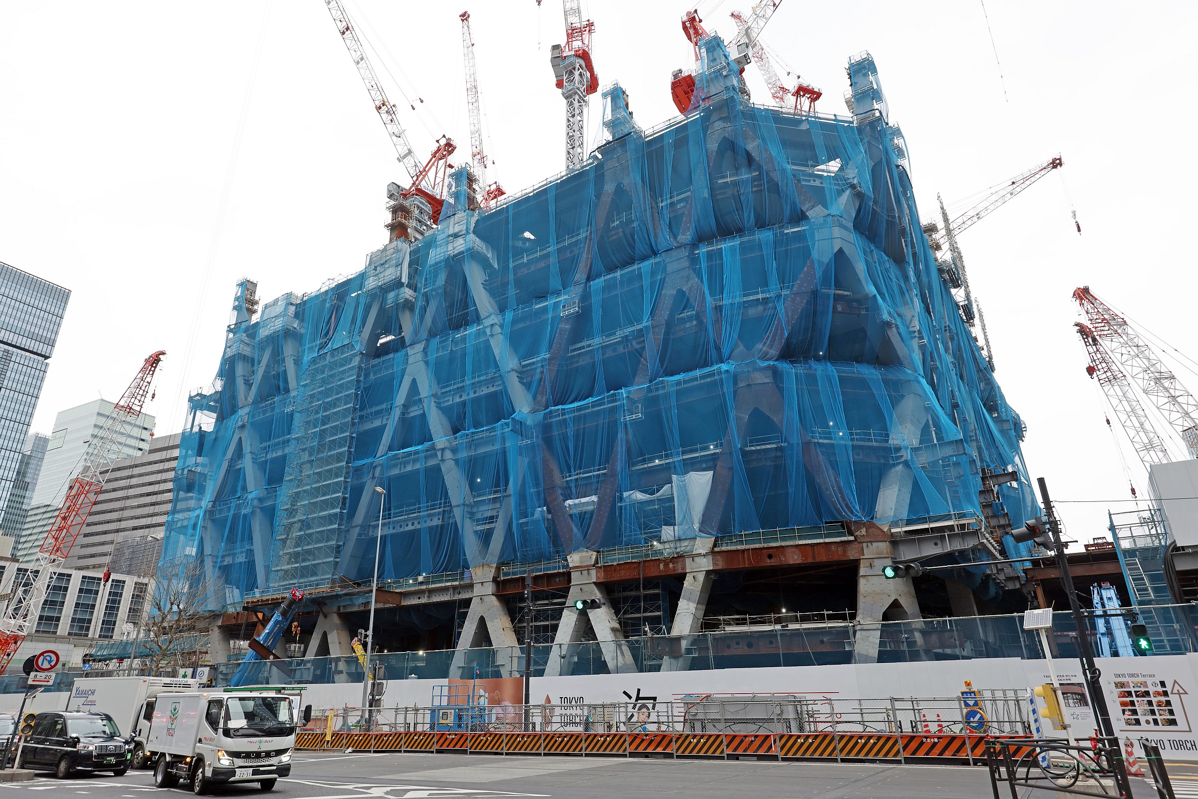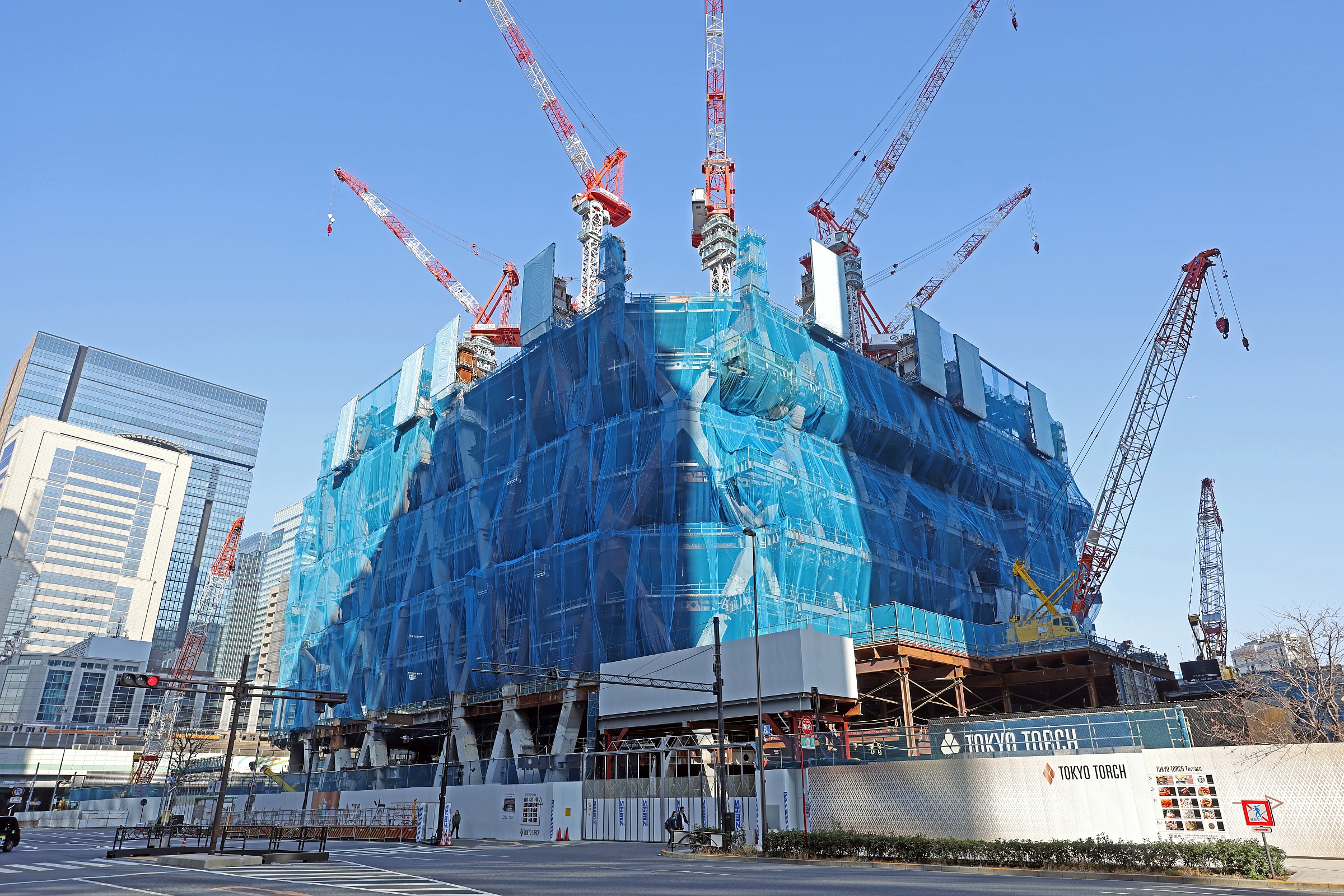 2026年2月15日に撮影した「Torch Tower(トーチタワー)」(地上62階、高さ385m)の建設地です。先週に引き続いて現在は9階部分の鉄骨が組まれています。同ビルは低層部に商業施設、中高層部にオフィス、そして最上部にホテル、賃貸レジデンス、展望施設が入る高さ日本一の超高層ビルになります。この記事では同ビルの概要や建設状況、地図等を載せています。