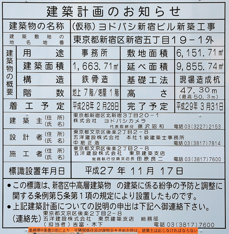 ¡¡Ì¾¾Î¤Ï¡Ö(²¾¾Î)¥è¥É¥Ð¥·¿·½É¥Ó¥ë¿·ÃÛ¹©»ö¡×¤Ç¡¢ÃϾå7³¬¡¢Åã²°1³¬¡¢¹â¤µ47.30m(ºÇ¹â50.3m)¡¢±ä¾²ÌÌÀÑ9,855.74֤Υª¥Õ¥£¥¹¥Ó¥ë¤È¤Ê¤ê¤Þ¤¹¡£Ã幩¤Ï2016ǯ2·î28Æü¡¢½×¹©¤Ï2017ǯ3·î31Æü¤ÎͽÄê¤Ç¤¹¡£·úÃÛ¼ç¤Ï¥è¥É¥Ð¥·¥«¥á¥é¤ÇÀ߷ס¢»Ü¹©¤Ï¸ÞÍηúÀߤǤ¹¡£