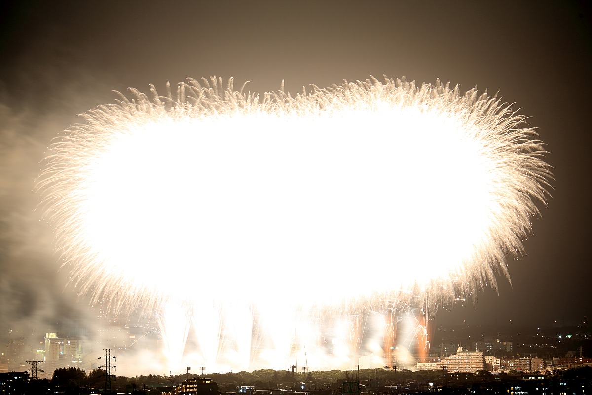 横並びの花火が凄すぎてこういった単発花火の写真はほぼボツになりました。。