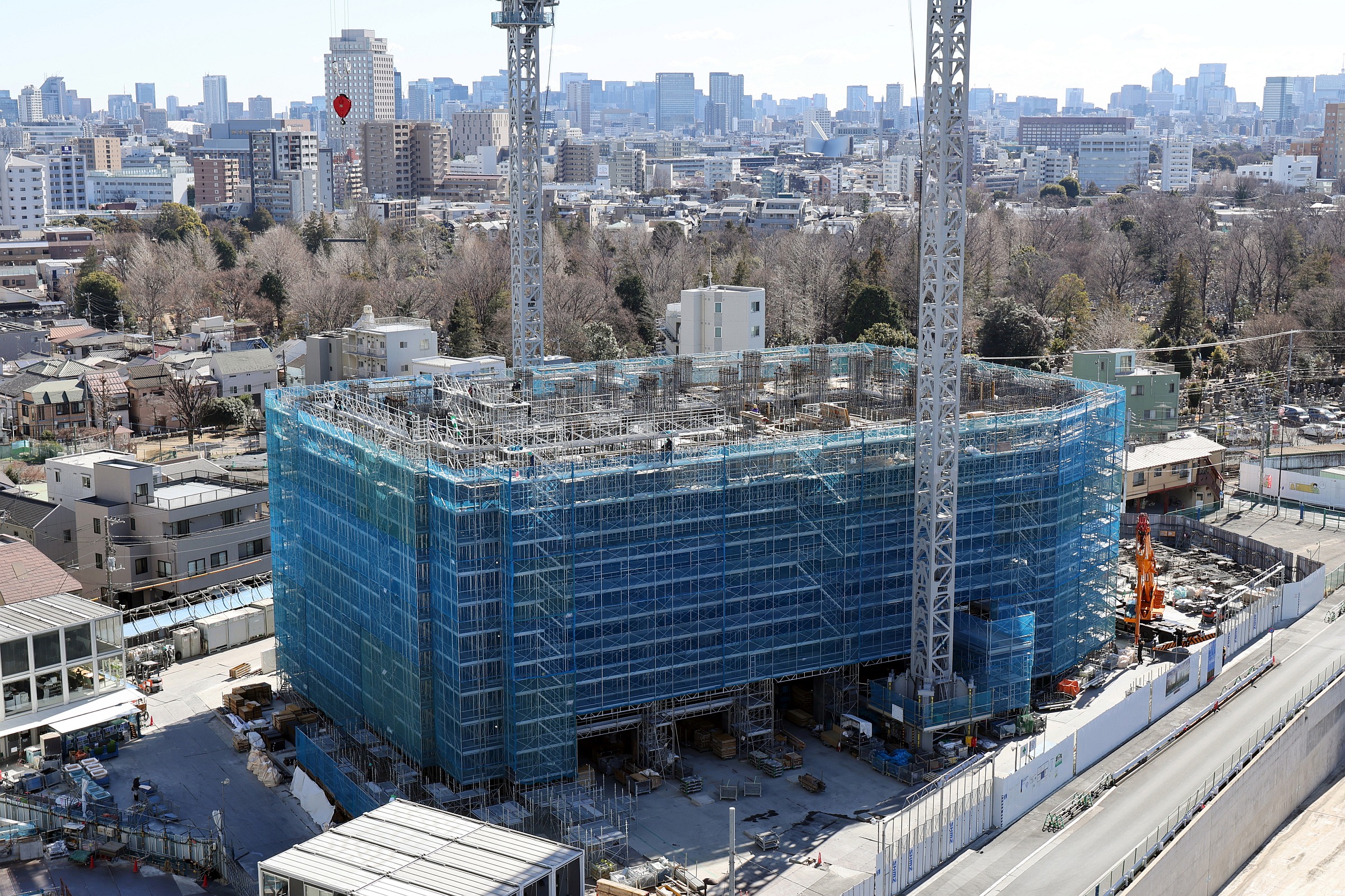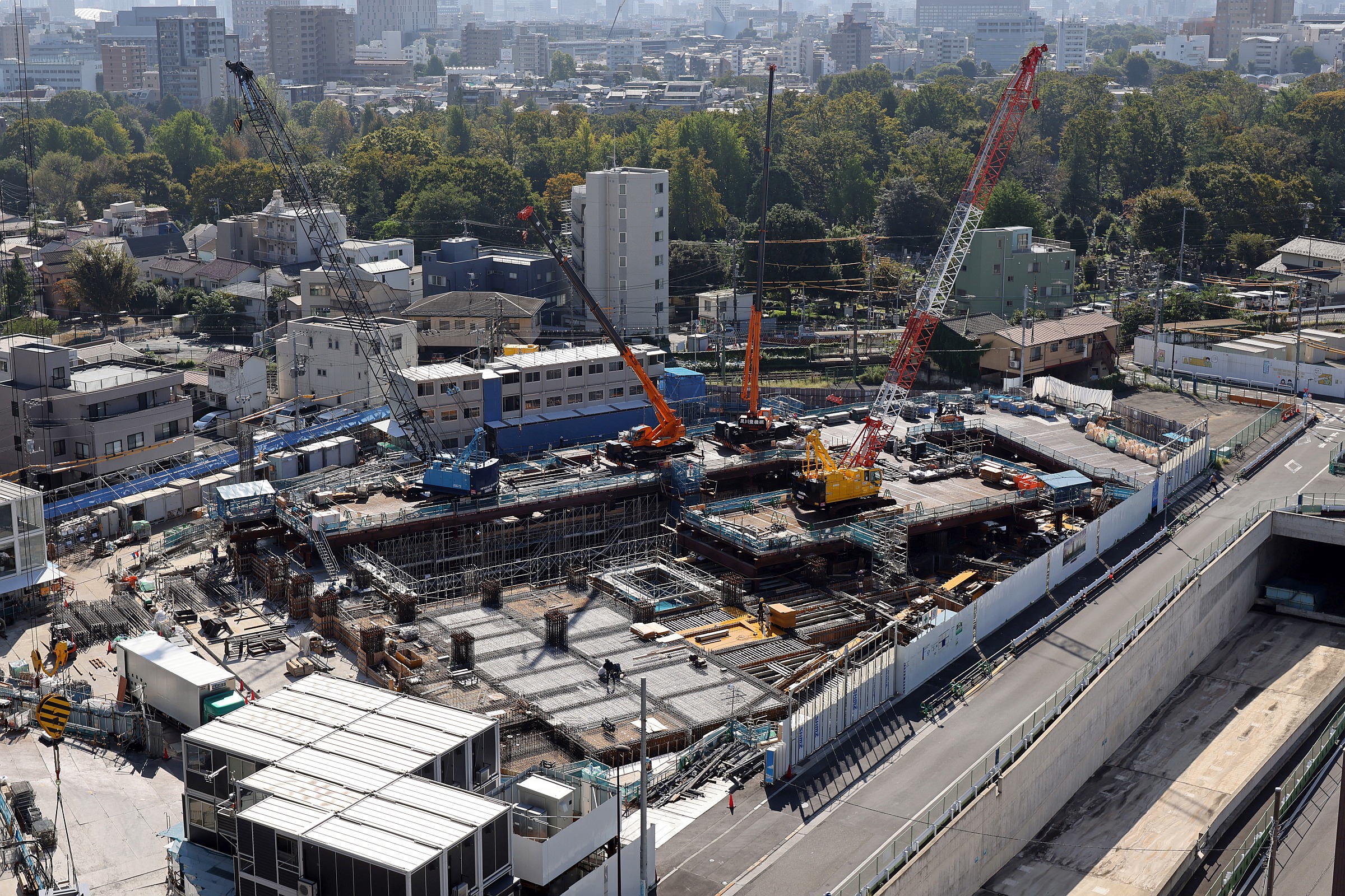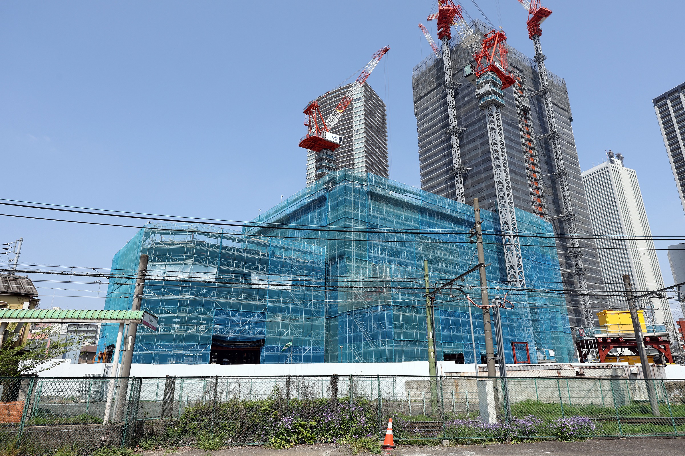地上31階「THE LINKPILLAR 2(ザ リンクピラー ツー)」と隈研吾氏デザイン「MoN Takanawa」の建設状況(2025.11.8)