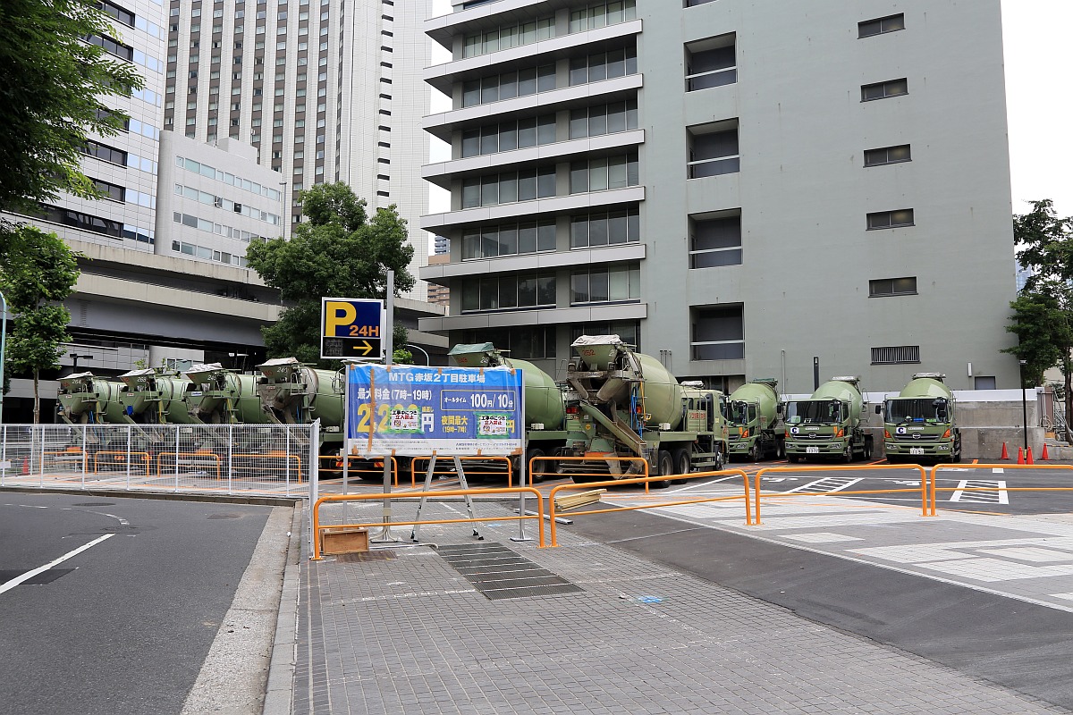 首都高側のこの1画はミキサー車専用の駐車場となっていました。
