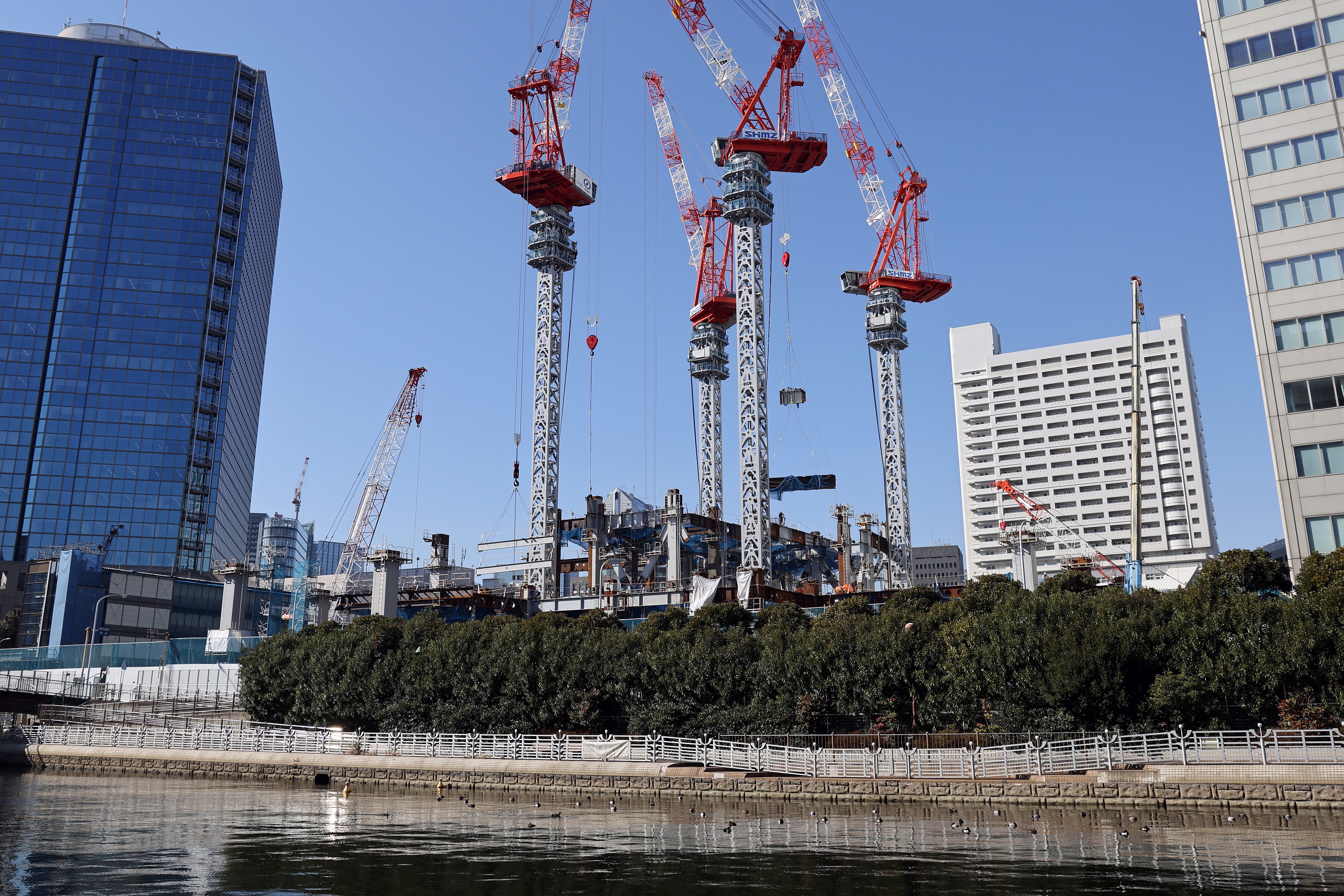 芝浦で建設中の「芝浦プロジェクト S棟」(地上43階、高さ228.88m)です。2023年9月2日に撮影しました。商業・オフィス・ホテルで構成される複合施設で、ホテルはアコーのラグジュアリーブランド「フェアモント東京」となることが発表されています。将来的には隣の「浜松町ビルディング(東芝ビルディング)」(地上40階、高さ165.9m)も高さ約230mの超高層ビルに建替えられ、日本最大級の超高層ツインビルが誕生することになります。この記事では同再開発の概要や建設状況、地図等を載せています。
