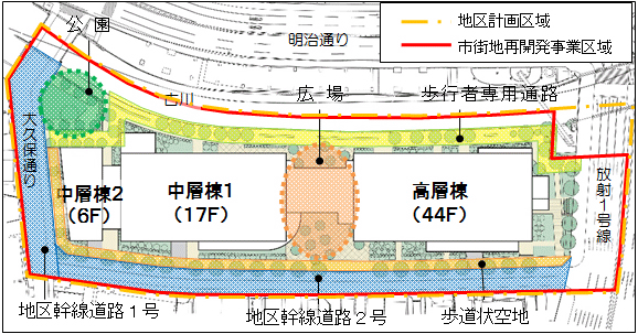 ¡¡ÅìÅ郎ÃϾå45³¬¡¢¹â¤µ156.10m¤Î͹âÁØÅï¤Ç¡¢À¾Åï¤Ï19³¬·ú¤Æ¤ÎÃæÁØÅï¤È¤Ê¤Ã¤Æ¤¤¤Þ¤¹¡£¤½¤ÎξÅï¤Î1³¬Éôʬ¤Ë¤Ï¾¦¶È»ÜÀߤ¬Æþ¤ê¡¢¤½¤·¤ÆÎ¾Åï¤Î´Ö¤Ë¤ÏÃæ±û¹¾ì¤âÀߤ±¤é¤ì¤Þ¤¹¡£