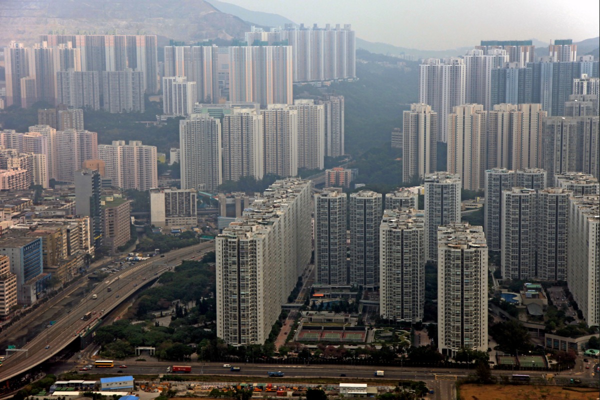 香港島の西端あたりのヘリコプターからの空撮です。 さすがに端まで来るとタワーマンションが ポツンポツンと建っている程度ですが ちょっとだけ左の方に行くと以下のような感じです。 |