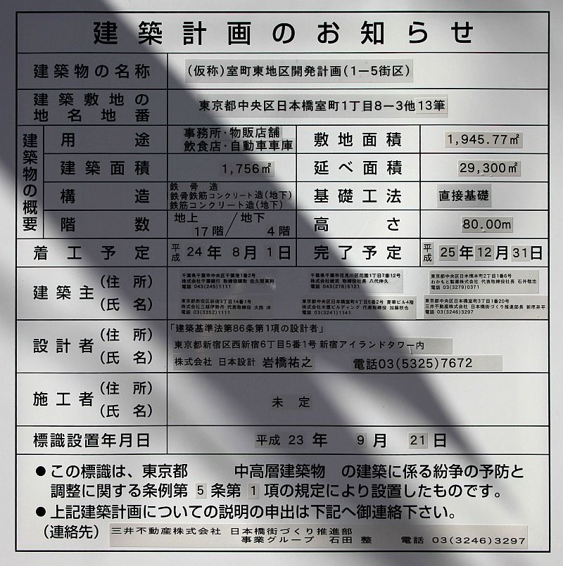 「(仮称)日本橋本町二丁目計画」と呼ばれていましたが