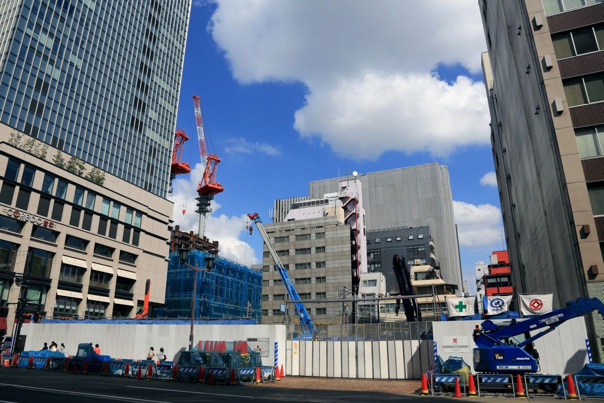 三越の目の前で建設中の