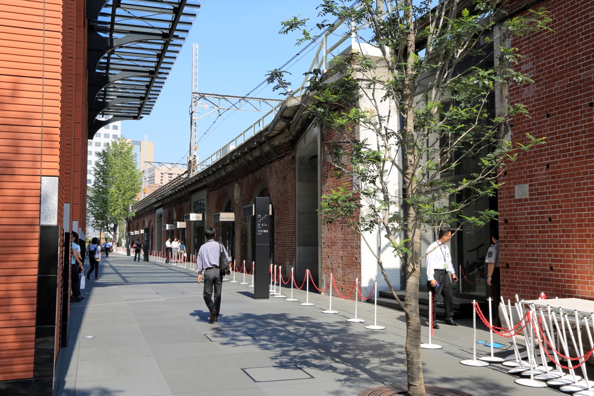 その手前の赤レンガの建物に入る旧万世橋駅を活かした商業施設